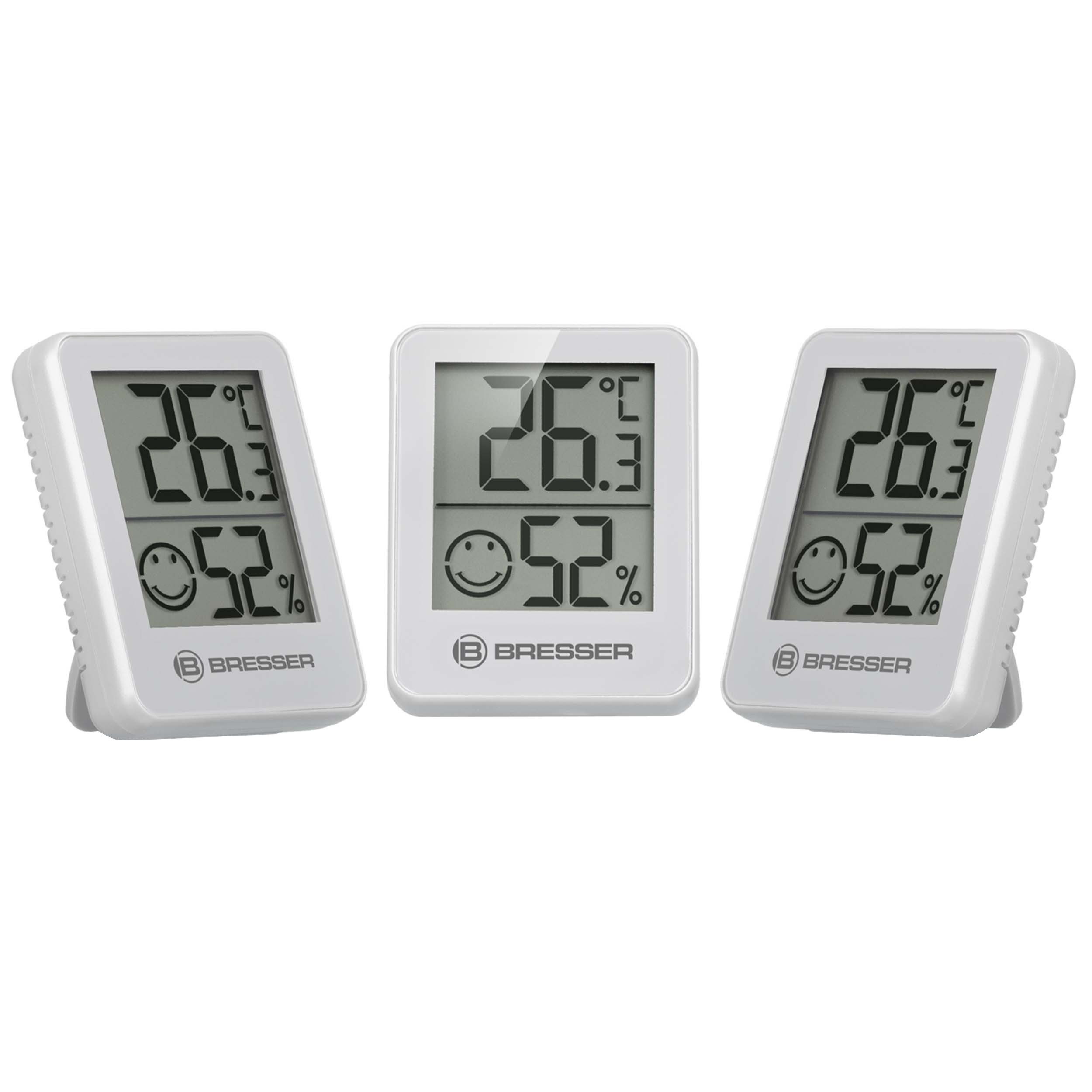 Lieferumfang | 3x Thermo-/Hygro-Station, 3x CR2032 Knopfzellen, Bedienungsanleitung |