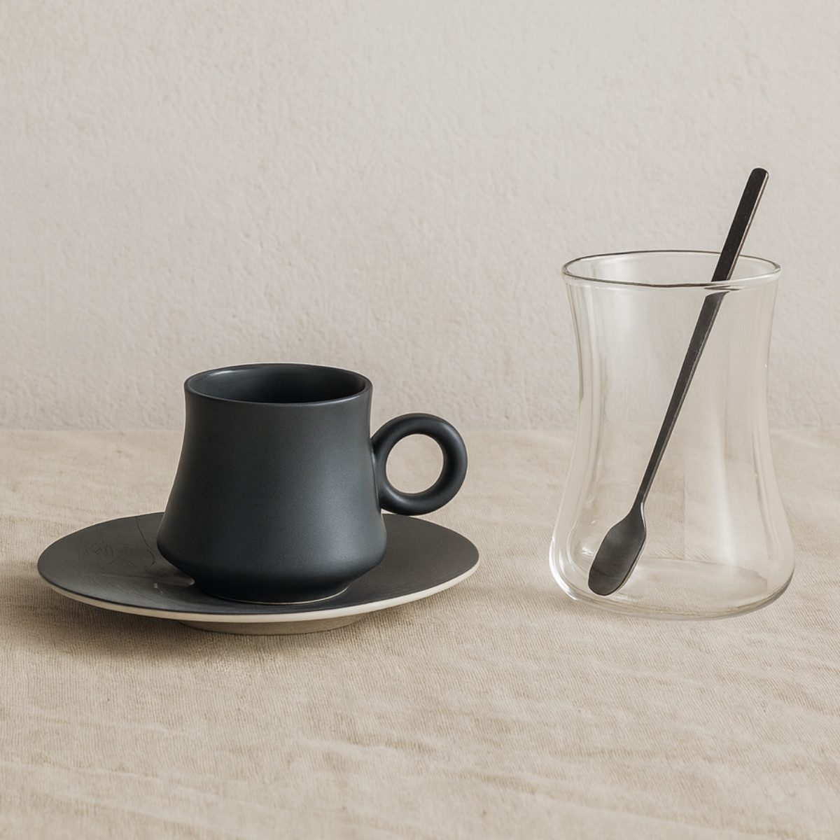 Eleganz trifft Funktionalität – das Tee-Espresso Set 008 vereint stilvolles Design mit hochwertiger Verarbeitung und ist damit die perfekte Wahl für besondere Genussmomente. Dieses edle 24-teilige Set beinhaltet sowohl Espressotassen als auch Teegläser, jeweils mit farblich abgestimmten Untersetzern und stilvollen Löffeln.