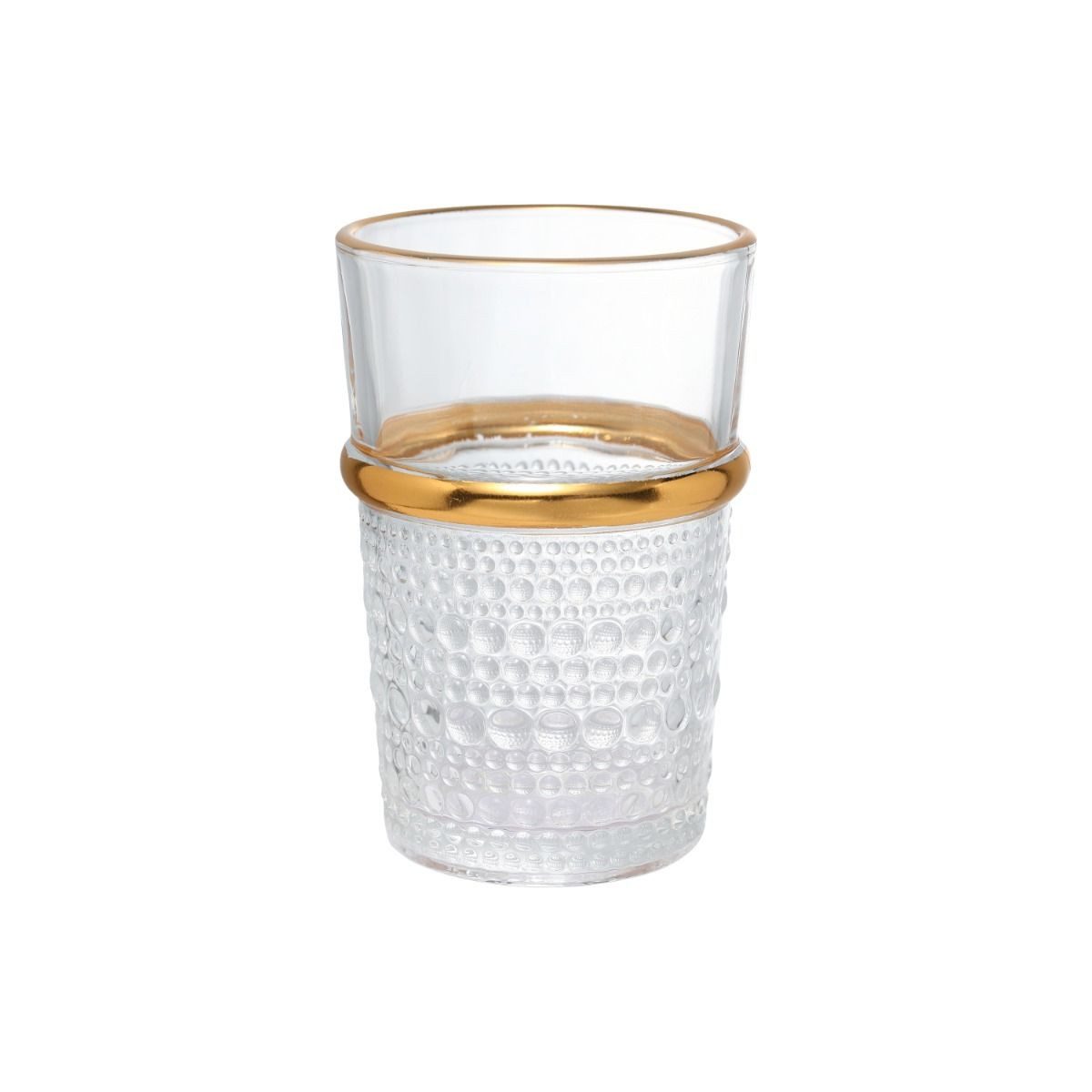 Das HAZA Gläser-Set von Bricard vereint modernes Design mit klassischer Eleganz. Mit ihrer einzigartigen Struktur aus geprägtem Blasenglas und einem luxuriösen Goldrand sind diese Gläser nicht nur funktional, sondern auch ein stilvoller Blickfang auf jeder gedeckten Tafel.
