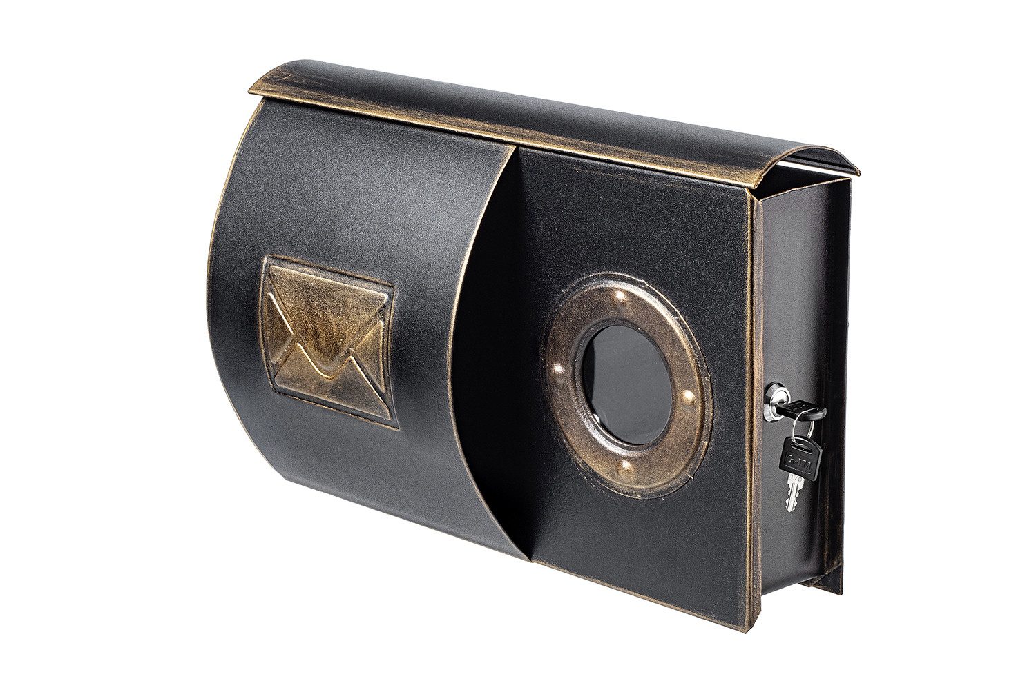 Dieser Wandbriefkasten aus pulverbeschichtetem Stahl im VINTAGE-Look eignet sich für Innen- und Außenbereiche. Neben dem Bullauge bietet ein gewölbtes Fach Platz für Zeitungen und Prospekte, die unversehrt entnommen werden können. Das spart Platz im Briefkasten, und das Bullauge ermöglicht einen schnellen Blick auf Ihre Post. Kleinere Unregelmäßigkeiten durch die Handarbeit sind charakteristisch und betonen die Einzigartigkeit dieser Postbox.