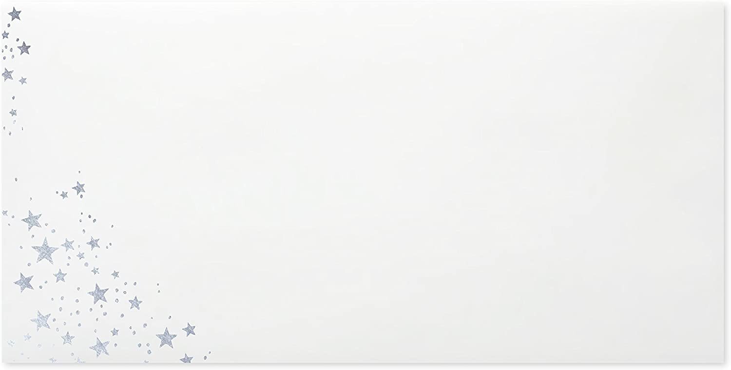 25 Weihnachtshüllen sehr schöne Din Lang Briefumschläge (120g) Farbe : Weiß/Weihnachtshüllen mit Silberprägung Silber Sterne 22 x 11 cm 220 x 110 mm