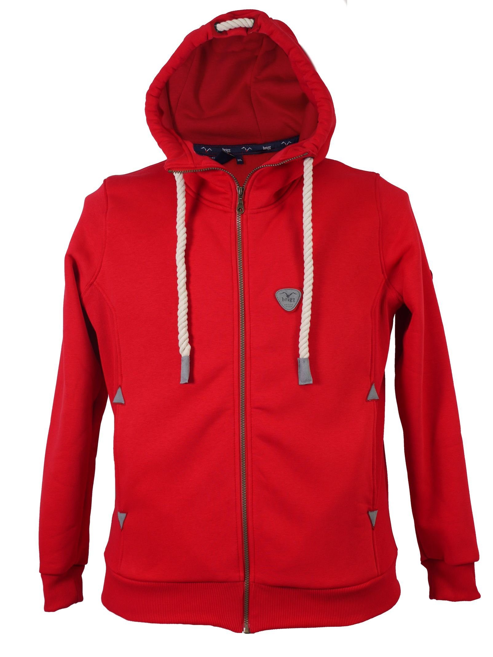 Die gefütterte XXL Sweatjacke von Brigg überzeugt mit einem kräftigen Material aus 65%Baumwolle und 35%Polyester. Dank der angerauten Innenseite erhält das Material eine extra weiche, wärmende Oberfläche. Für beste Trageeigenschaften ist die Jacke, neben den Ärmelbündchen und dem elastischen Bundabschluss, im Lendenbereich ebenfalls mit elastischen Einsätzen gearbeitet. Zwei Schubtaschen bieten Stauraum für Kleinigkeiten.
