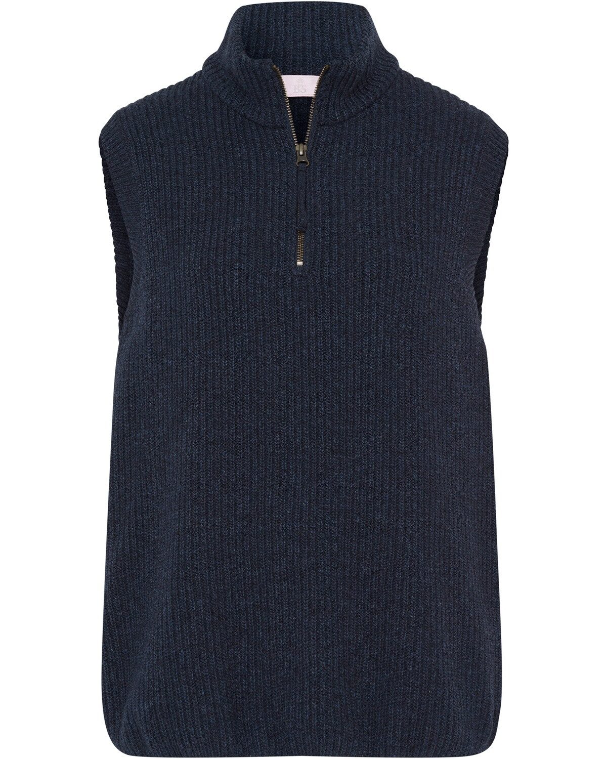 Mit dem Damen Pullunder mit Troyerkragen erhält man ein Stück, das Lässigkeit und klassischen Stil mühelos vereint. Die sportliche Note des Troyerkragens mit Reißverschluss verleiht jedem Outfit eine dynamische Komponente, während das gestrickte Patentmuster für eine interessante Textur sorgt. Die fully fashioned Verarbeitung garantiert eine optimale Passform, die sich den Körperkonturen elegant anpasst ohne aufdringlich zu sein.