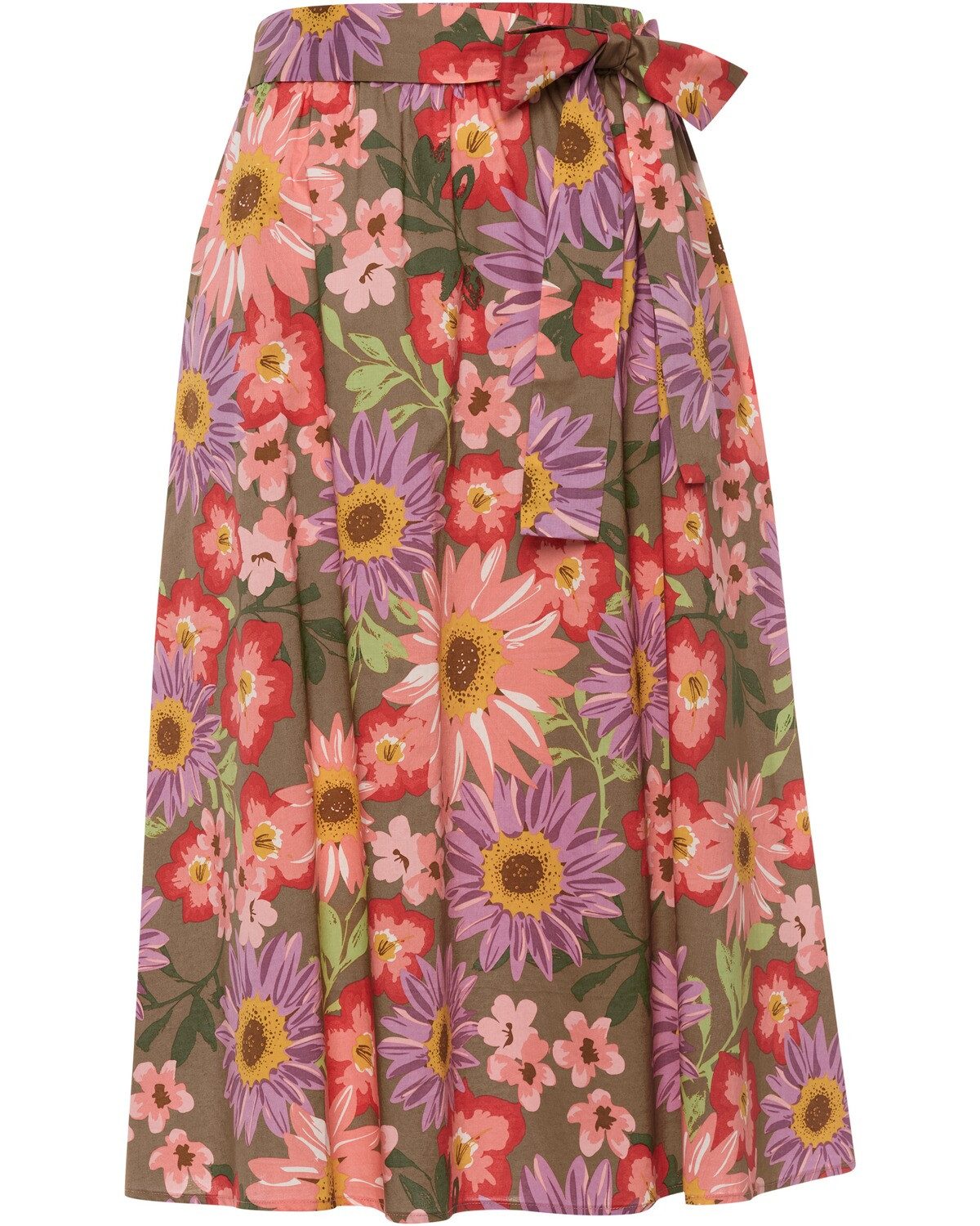Der zeitlose Rock begeistert durch seinen elastischen Bund, der nicht nur für einen hohen Tragekomfort sorgt, sondern auch eine optimale Passform garantiert. Hergestellt aus hochwertiger Baumwolle, bietet das Material eine angenehme Haptik, ideal für verschiedene Anlässe. Der stilisierte Blumenprint verleiht dem Rock eine frische, feminine Note und macht ihn zu einem vielseitigen Kleidungsstück für die warmen Monate. Der integrierte Stoffgürtel setzt nicht nur einen modischen Akzent, sondern ermöglicht auch eine individuelle Anpassung an die Taille. So wird der Look sowohl lässig als auch elegant, je nach Kombination mit Oberteilen und Accessoires. Die Möglichkeit, den Rock sowohl mit einem einfachen T-Shirt als auch mit einer Bluse zu stylen, macht ihn zu einem unverzichtbaren Teil jeder Garderobe. Praktische Eingrifftaschen in den Seitennähten bieten nicht nur Platz für kleine Utensilien, sondern tragen auch zur Bequemlichkeit bei. Dieser Rock ist die ideale Wahl für modebewusste Frauen, die Wert auf Stil und Funktionalität legen. Ob im Alltag oder bei besonderen Anlässen, er lässt sich mühelos in verschiedene Outfits integrieren und sorgt stets für einen gelungenen Auftritt. Oberstoff: 100% Baumwolle