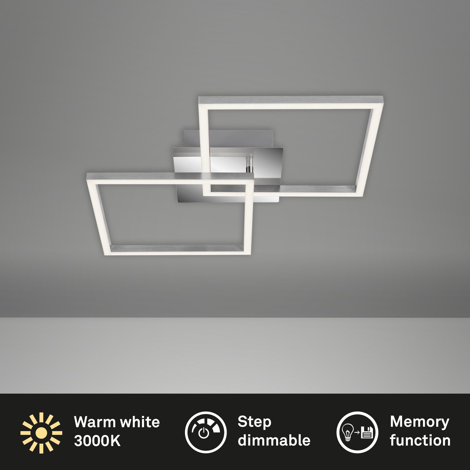 Die Lampe bietet eine stufenweise Dimmbarkeit (100% - 50% - 20%), sodass Sie die Helligkeit ganz bequem über den Lichtschalter ändern können.