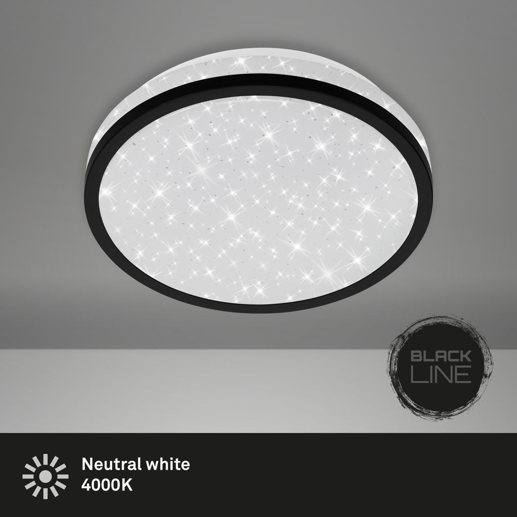 Wissenswertes | Briloner Leuchten - "LED Deckenleuchte mit Sternendekor Kunststoff / schwarz inkl. 1 x LED-Platine 10W 900lm 4.000K Lebensdauer 25.000h, Ra>=80 nicht dimmbar, inkl. schwarzem Ring IP20 217x60mm (DxH)" |