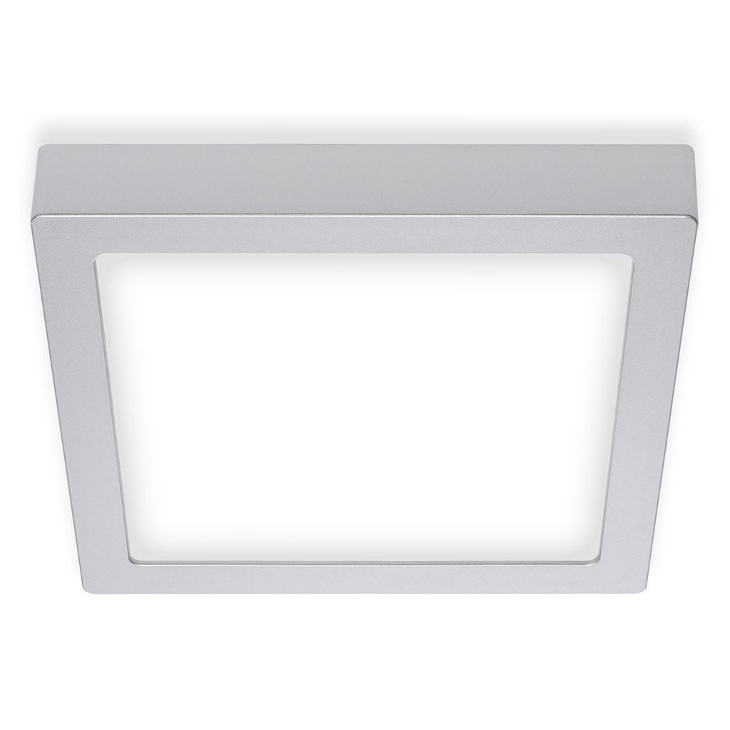 Moderne, quadratische LED Aufbauleuchte in chrom-matt, gefertigt aus Metall-Kunststoff. Durch ihr schlichtes Design ist die Deckenlampe vielseitig einsetzbar, z.B. als Wohnzimmerleuchte, Schlafzimmerleuchte oder Küchenleuchte.