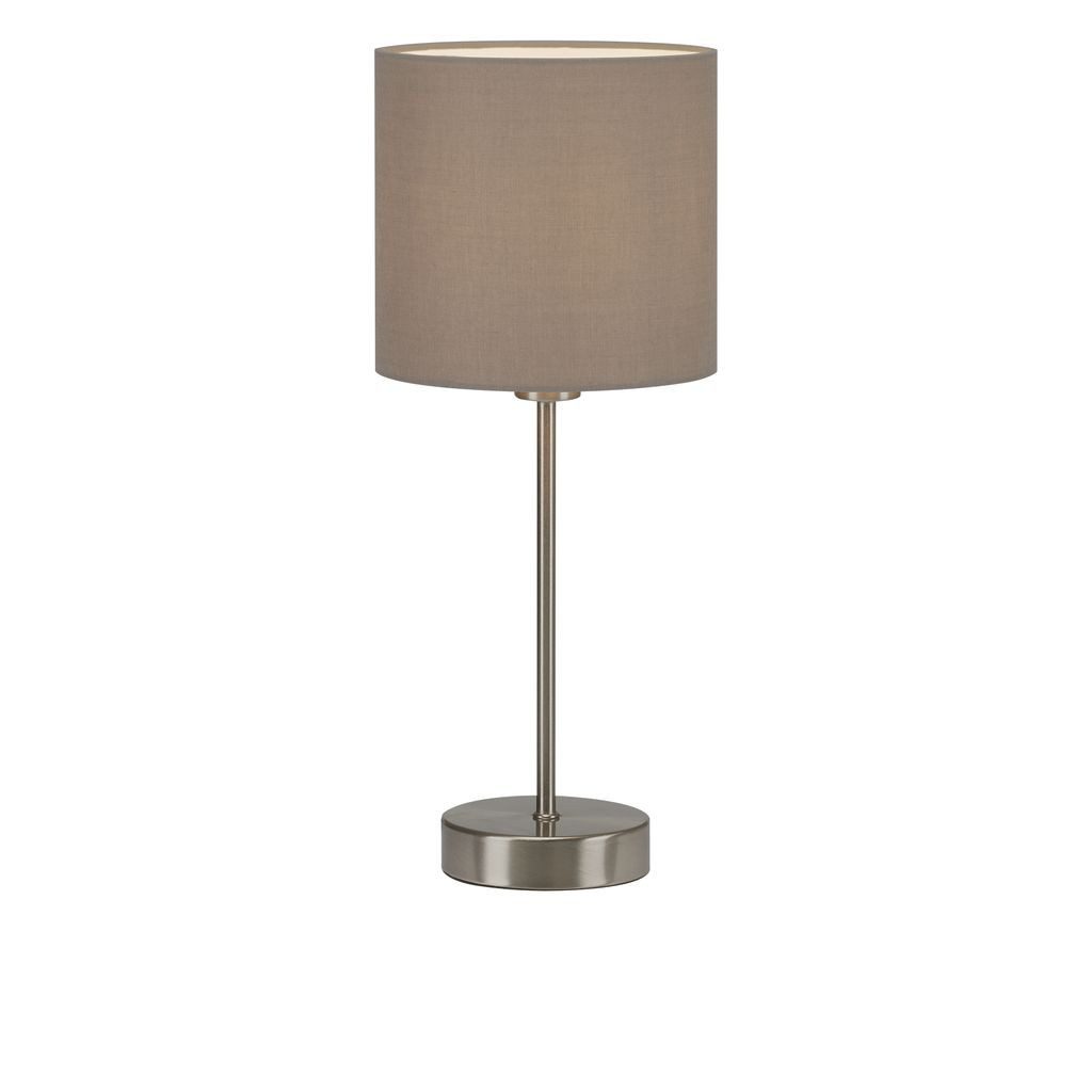 Diese stilvolle, einflammige Tischleuchte mit einem taupefarbenen Stoffschirm fügt sich dank ihres schlichten Designs nahtlos in verschiedenste Raumgestaltungen ein. Sie eignet sich ideal als Nachttisch- oder Schreibtischlampe und schafft eine angenehme Beleuchtung.