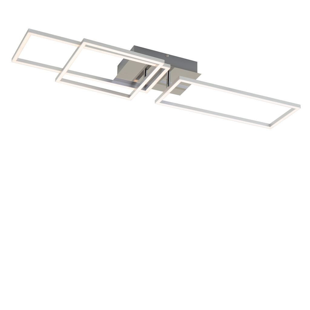 Diese elegante LED Deckenlampe in chrom-alu verfügt über zwei rechteckige und ein quadratisches LED-Modul, gefertigt aus hochwertigem Metall-Kunststoff. Ihr modernes Design macht sie zu einem ansprechenden Element in jedem Raum.