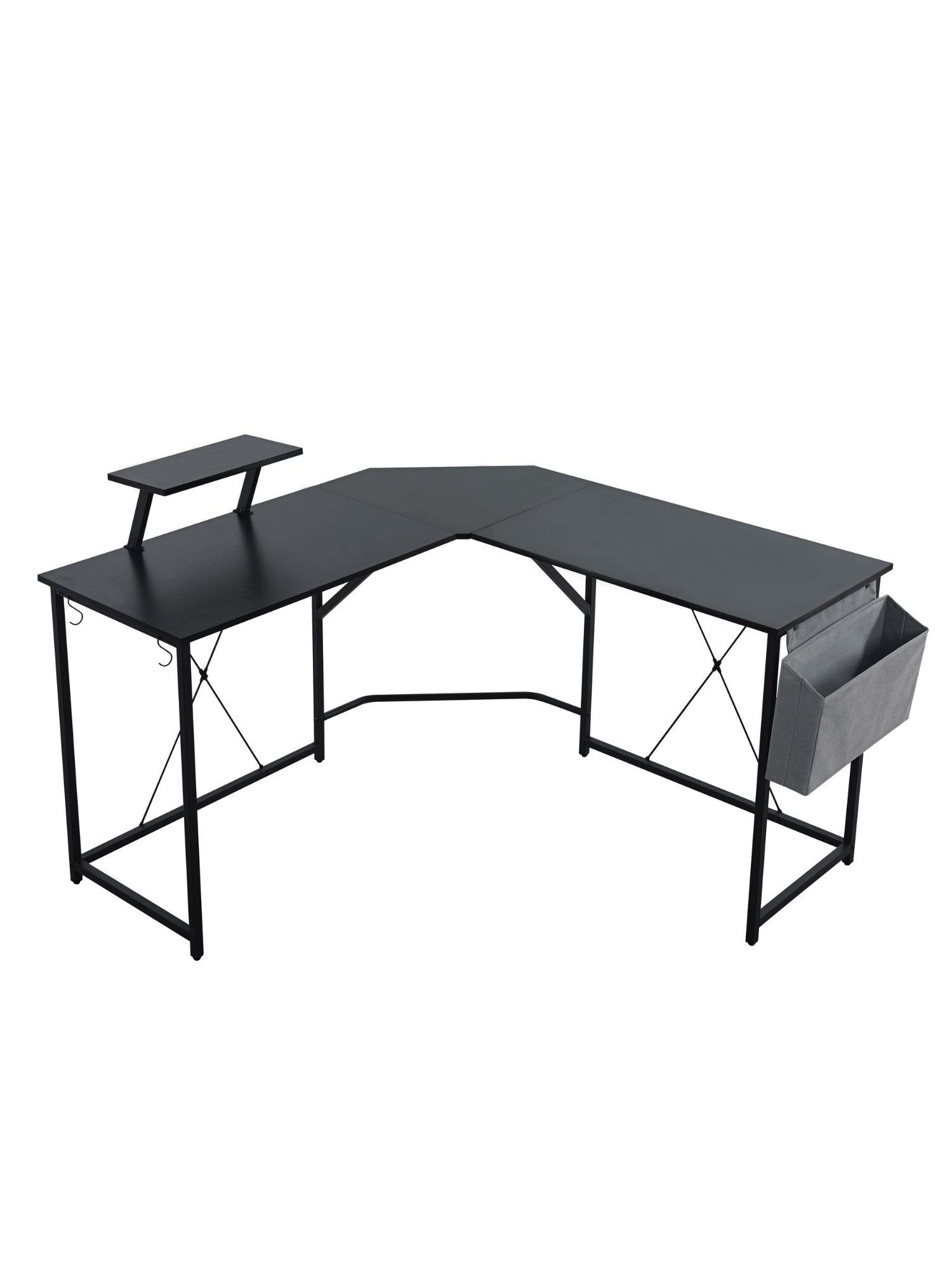 Lieferumfang | L-förmiger Computertisch, Monitoraufsatz, Stofftasche, 2x Haken, Anleitung, Montagematerial |