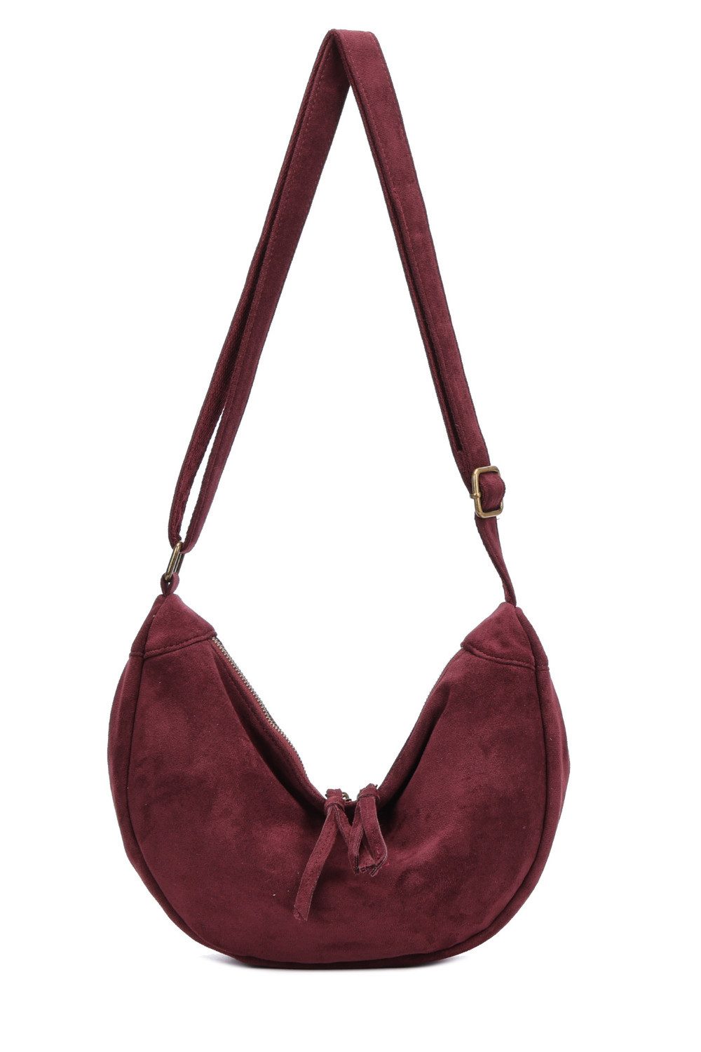 Mit ihrer stilvollen Halbmondform und der dekorativen Quaste ist diese Tasche ein echter Hingucker. Kombinieren Sie sie mit einem eleganten oder lässigen Look – sie passt sich Ihrem Stil perfekt an.