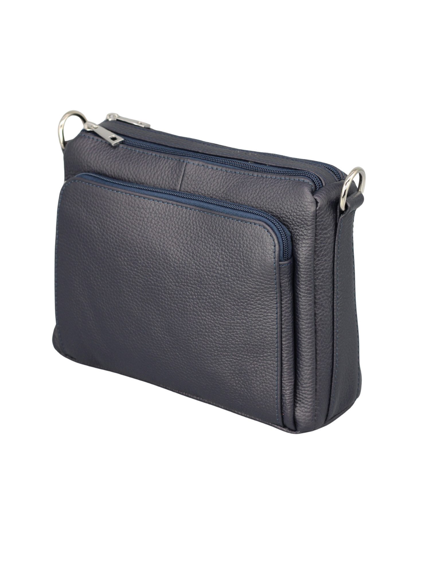 Zeitlose Umhängetasche aus hochwertigem, genarbtem echtem Leder, in Italien gefertigt. Mit ihren kompakten Maßen von 25 × 19 × 9 cm und nur 0,4 kg Gewicht ist sie der ideale Alltagsbegleiter für Arbeit, Freizeit und Reisen. Der glatte Reißverschluss lässt sich leicht öffnen und schließen und sorgt für sicheren Zugriff.