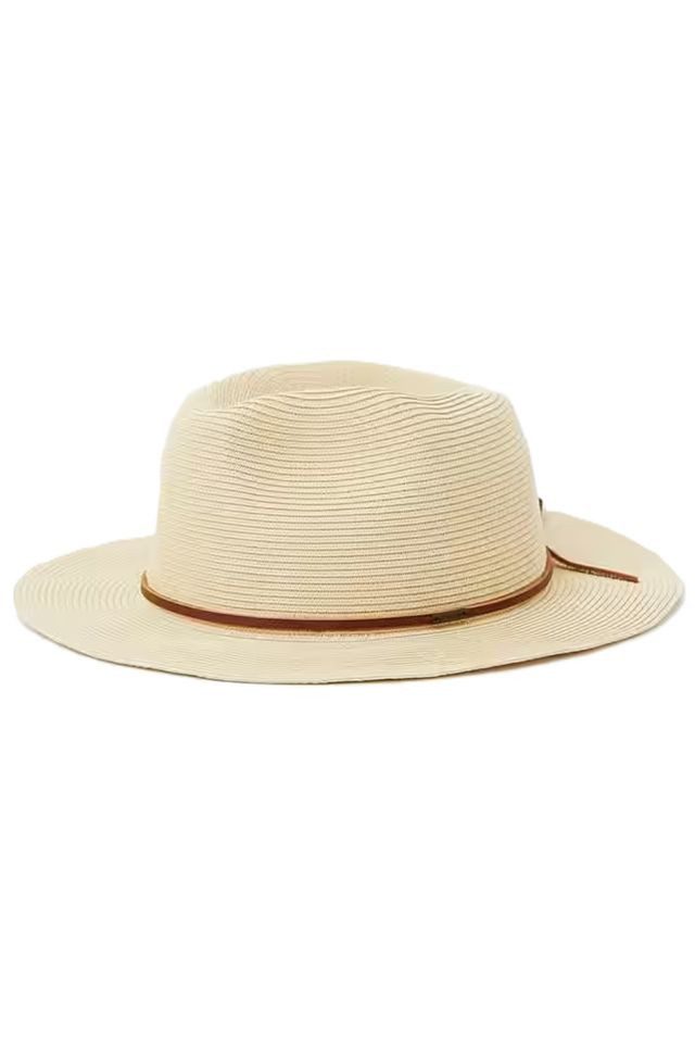 Der Wesley Straw Packable Fedora von Brixton ist ein stilvoller Reisebegleiter mit funktionalem Design. Gefertigt aus flexiblem, formstabilem Stroh, lässt sich der Hut problemlos zusammenfalten und kehrt sofort in seine ursprüngliche Form zurück – ideal für unterwegs. Die tropfenförmige Krone und die flache, mittellange Krempe verleihen dem Fedora eine klassische Silhouette mit modernem Charakter.