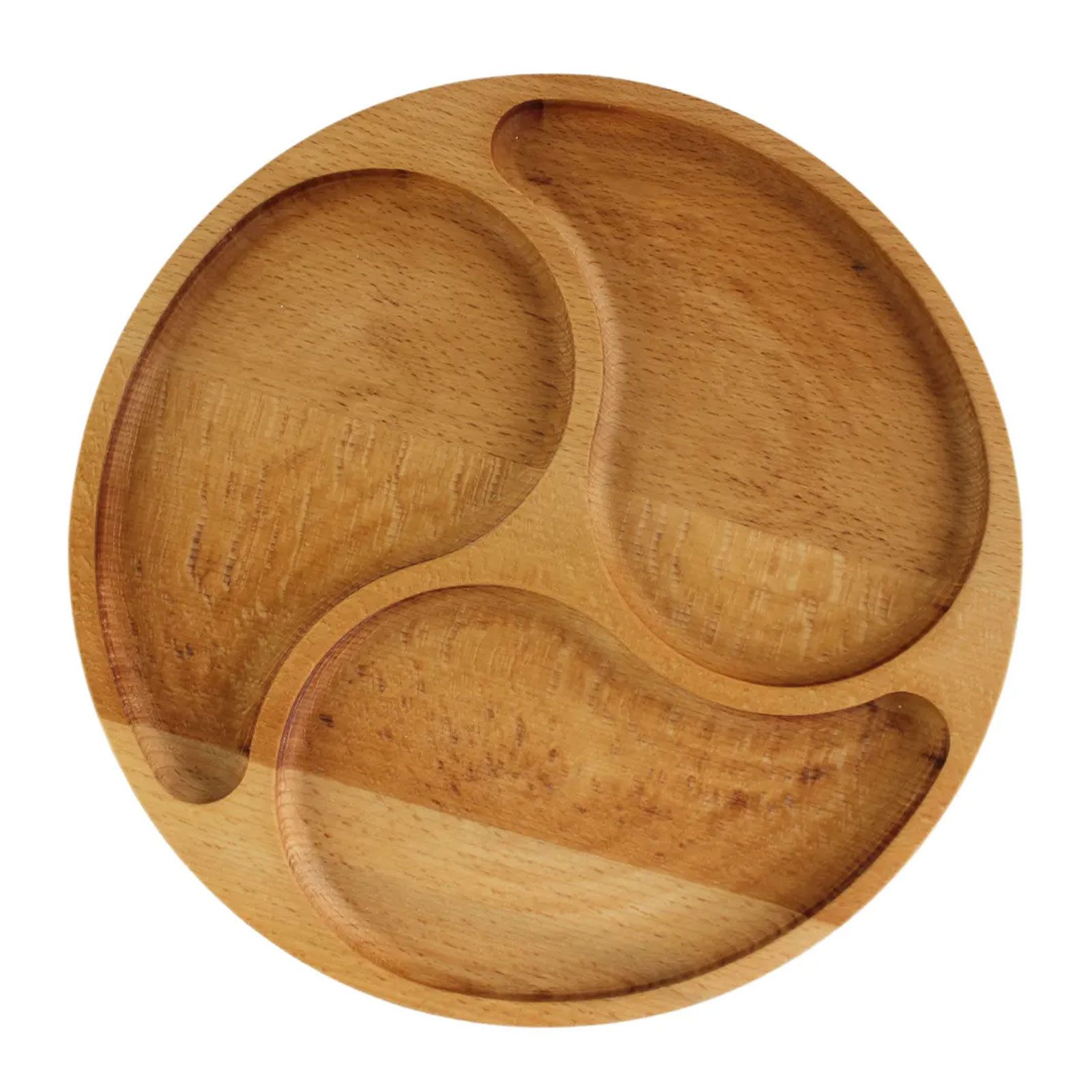 Runde Holzservierplatte mit mehreren Fächern aus Buchenholz