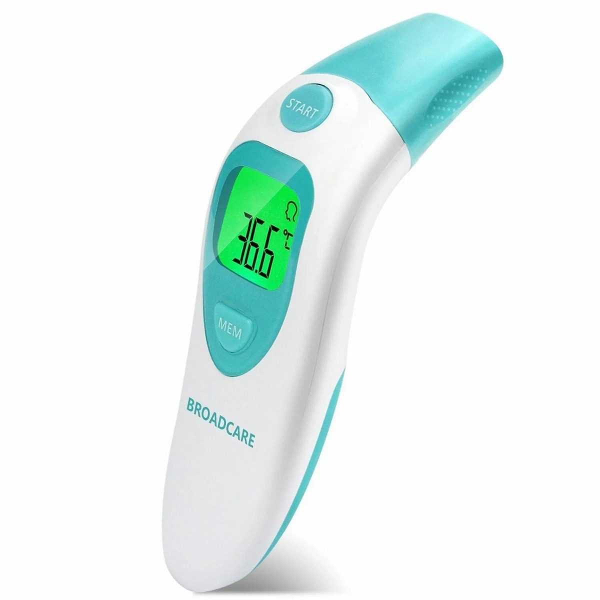 Dieses digitale Infrarot Fieberthermometer der Marke Broadcare kann die Körpertemperatur sowohl an der Stirn, als auch im Ohr messen, weshalb es besonders für Babys und Kleinkinder geeignet ist. Es bietet auch die Möglichkeit, die Raumtemperatur und die Oberflächentemperatur von Milch zu bestimmen. Durch einen Piepton signalisiert das Thermometer die abgeschlossene Messung, das Signal kann auf Wunsch stumm geschaltet werden. Nach 30 Sekunden schaltet sich das Thermometer automatisch ab, um Energie zu sparen. Es können bis zu 20 Messungen hintereinander gespeichert werden, um den Fieberverlauf zu dokumentieren.