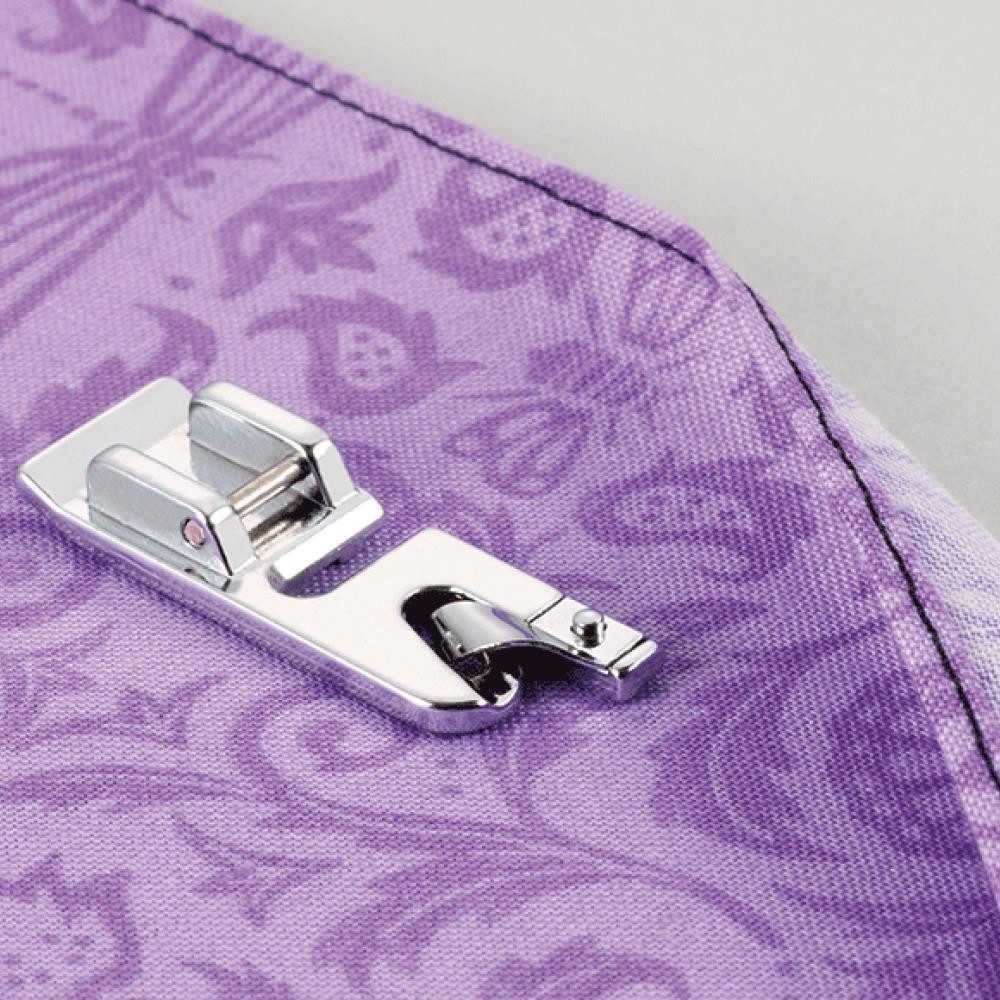 Zum schmalen und exakten Einfassen und Versäubern. Geeignet für flache, schmale Säume bei leichten Stoffen, ohne dass ein vorheriges Umbügeln erforderlich ist.