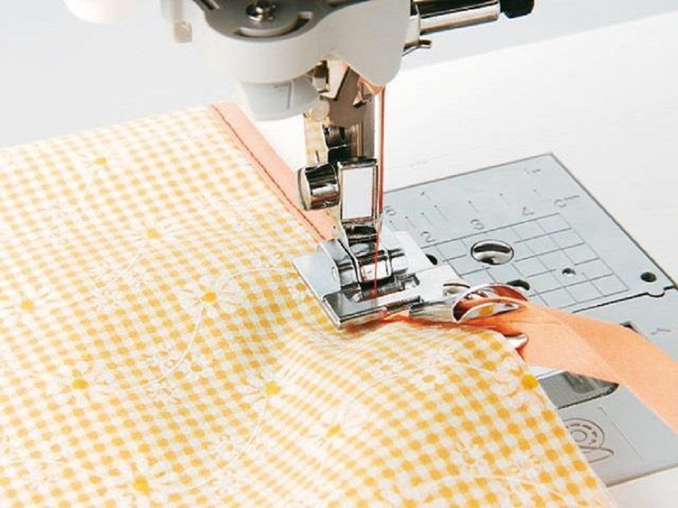 Schrägbandeinfasser mit Führungsschiene zum Einfassen von Kanten.