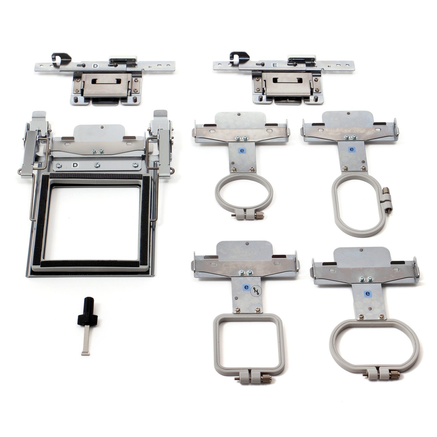 Das Brother Monogramm-Kit ist mit einem Klemmrahmen-Set und einem Kompaktrahmen-Set ausgestattet. Mit den Rahmen lassen sich wunderbar kleinere Muster, Logos und Monogramme auf z. B. Babykleidung, kleinere Taschen und vieles mehr sticken.