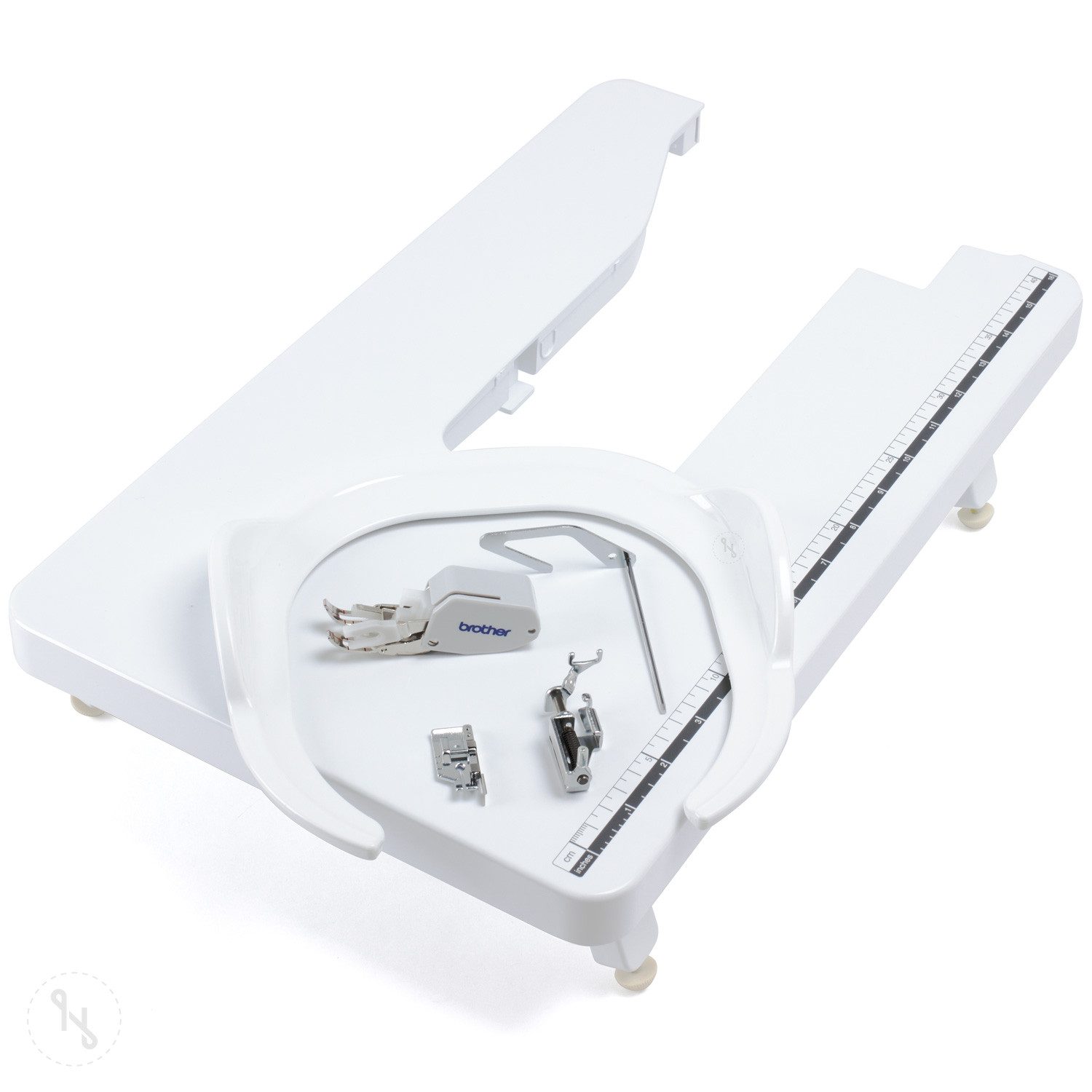 Der Quiltanschiebetisch vergrößert Ihre Nähfläche, damit die größeren Stoffmengen in Verbindung mit dem Obertransportfuß auch gleichmäßig transportiert werden können.