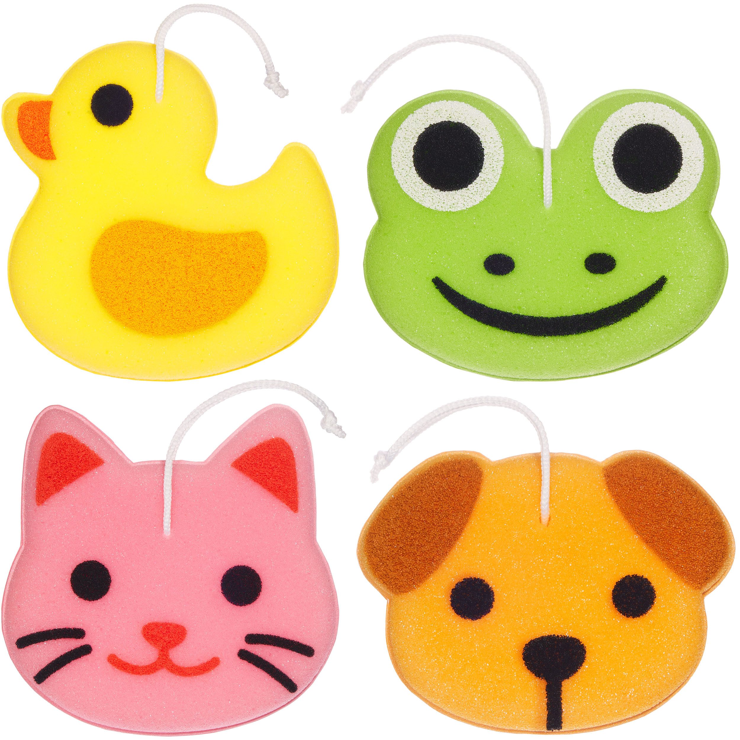 Tier-Badeschwamm Set - 4er Pack - Verspielte Peeling-Duschschwämme für Kinder - Enthält gelbe Ente, grünen Frosch, braunen Hund und rosa Katze