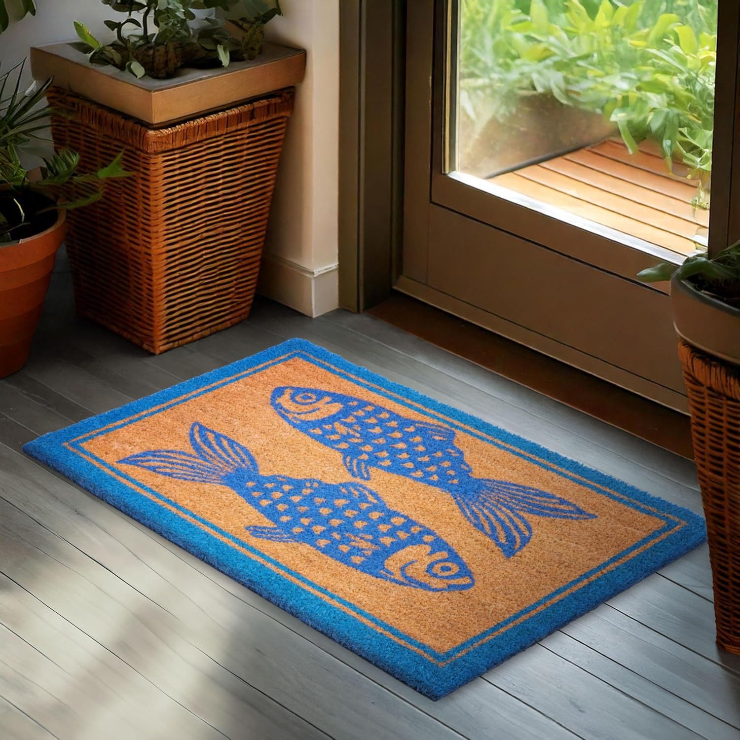 Mit der BRUBAKER Fußmatte holst du dir ein Stück Meer direkt vor die Haustür. Ob Leuchtturm, Steuerrad, Anker, „Welcome on Board“ oder blaue Fische – der maritime Look sorgt für maritimes Flair auf Terrasse, Eingang oder Treppe. Als Schuhabtreter in Standardgröße (45 x 75 cm) hält die Kokosmatte Schmutz zuverlässig draußen und sorgt dafür, dass dein Zuhause sauber bleibt.