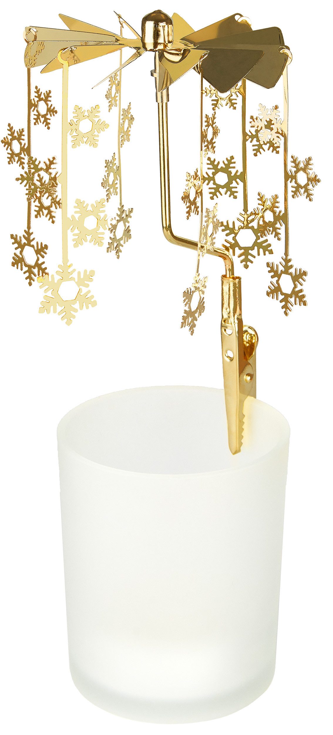 Die Schneeflocken und das elegante Karussell-Design schaffen eine stimmungsvolle Weihnachtsdekoration, die sich perfekt in klassische und moderne Einrichtungsstile einfügt. Wähle zwischen edlem Gold oder stilvollem Silber, um den perfekten Akzent für deine Tischdekoration zu setzen. Das Glas-Windlicht erzeugt ein warmes, behagliches Licht, das jede Umgebung in eine winterliche Wohlfühloase verwandelt.