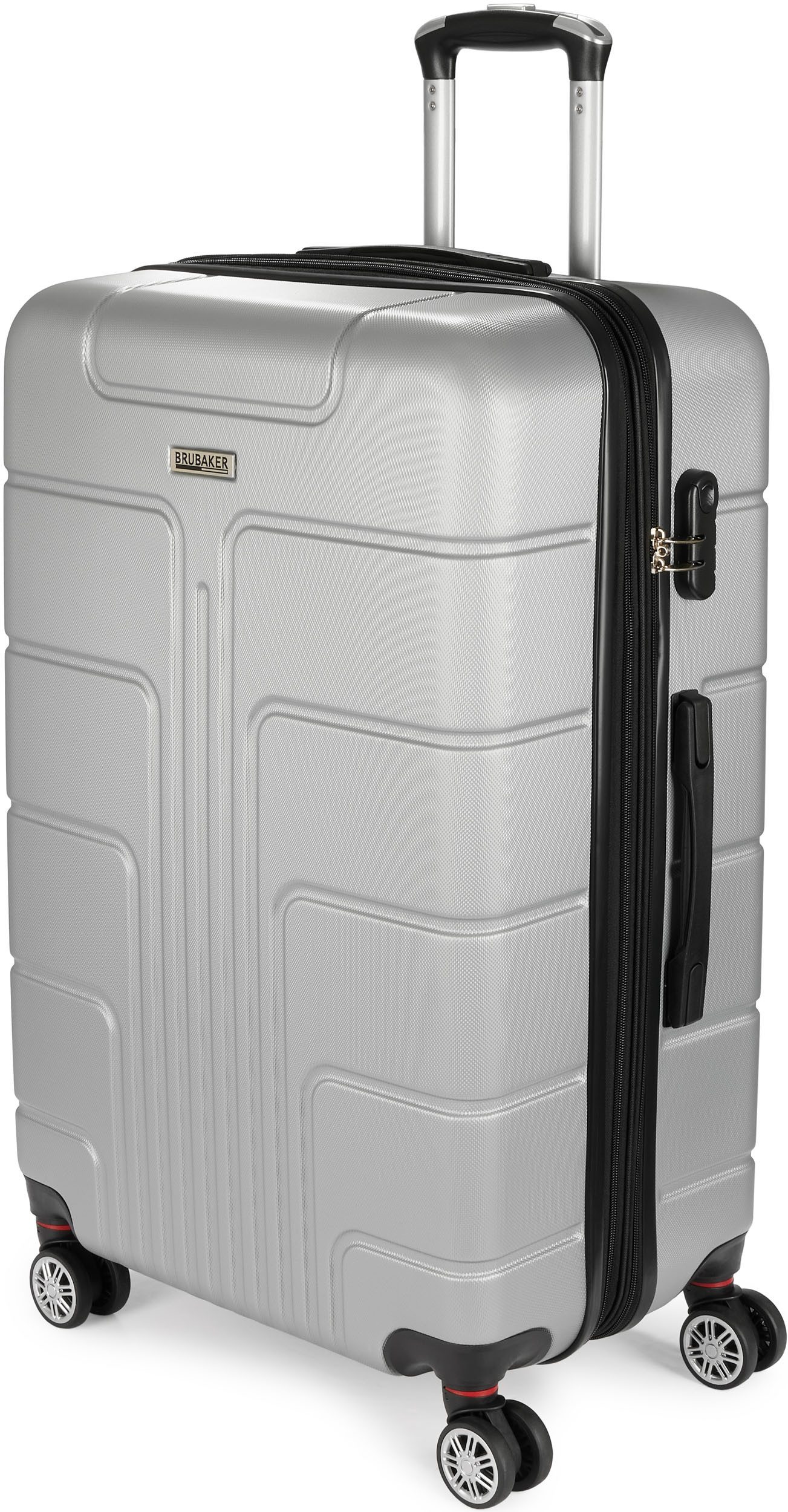 Unsere Hartschalenkoffer bieten erstklassigen Komfort. Mit integriertem Zahlenschloss und vier hochwertigen Doppel-Rollen, die sich um 360° drehen lassen, erlebst du ein reibungsloses und leises Rollen über verschiedene Untergründe. Die gummierten Zwillingsrollen mit silbernem Felgendesign verleihen den Koffern nicht nur einen modernen Look, sondern sorgen auch für eine angenehme Handhabung und volle Manövrierbarkeit.