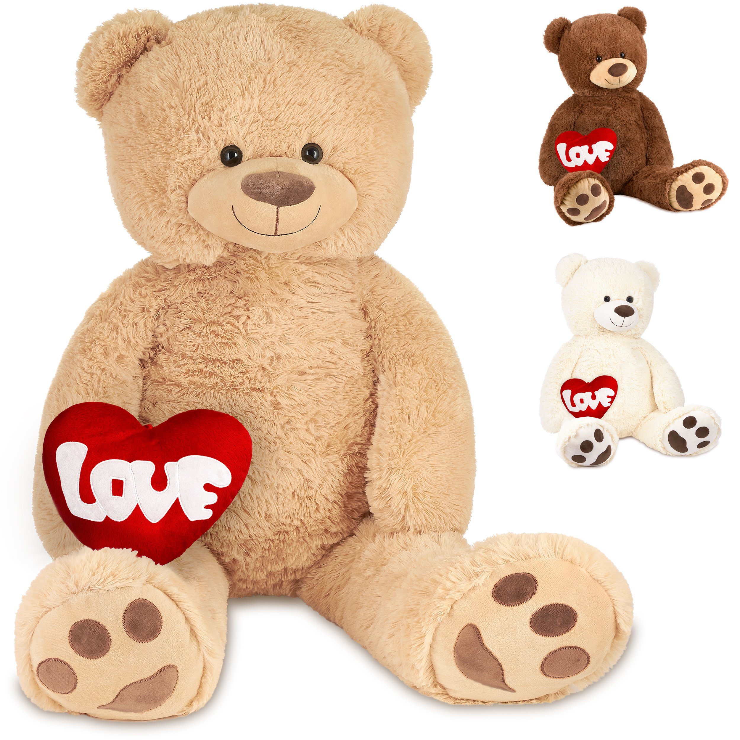 Der XXL Plüschteddy weckt Glücksgefühle beim Beschenkten. Er eignet sich nicht nur als neuer Spielgefährte, auch als Deko-Element im Wohnzimmer zieht er alle Blicke auf sich.