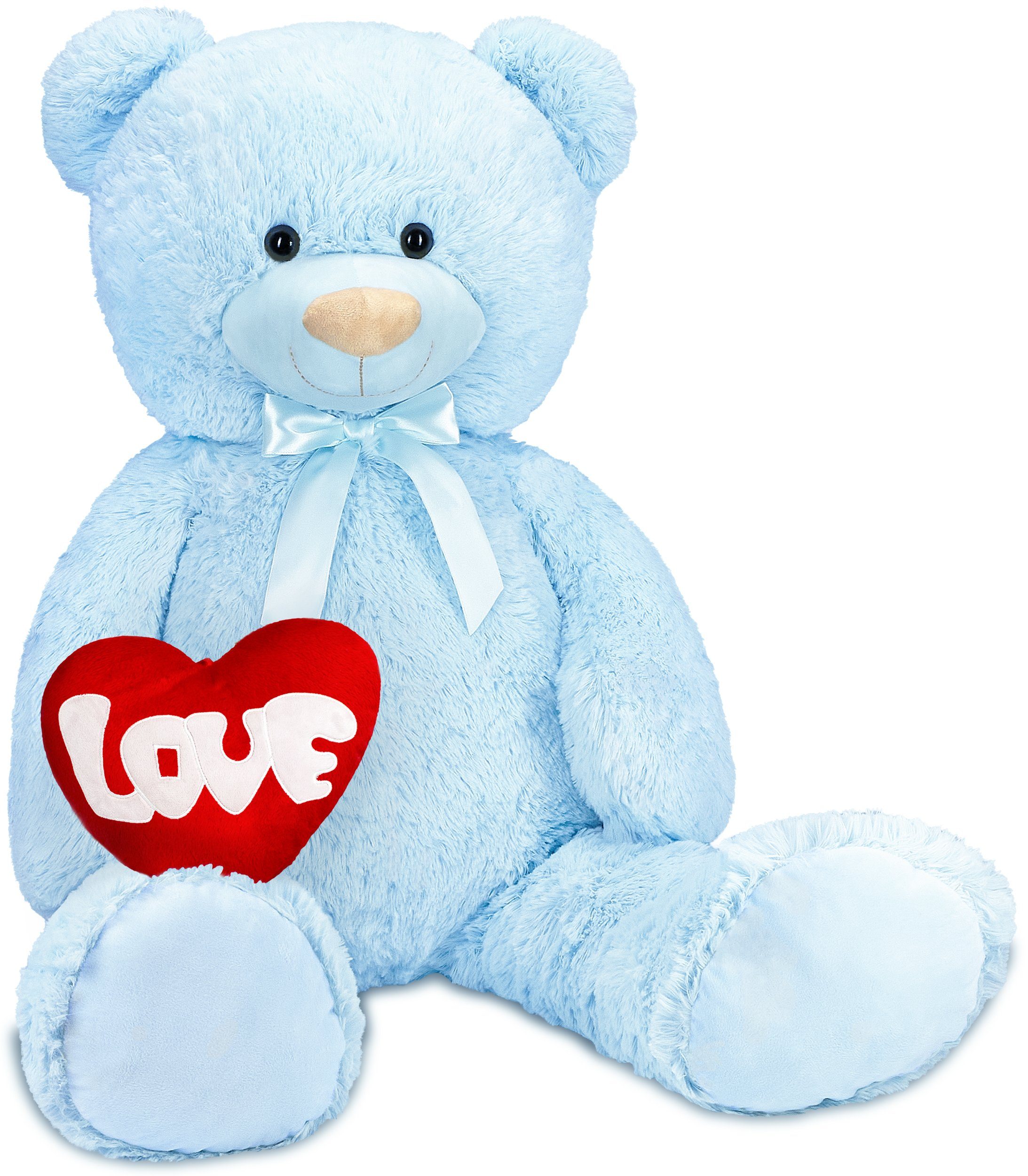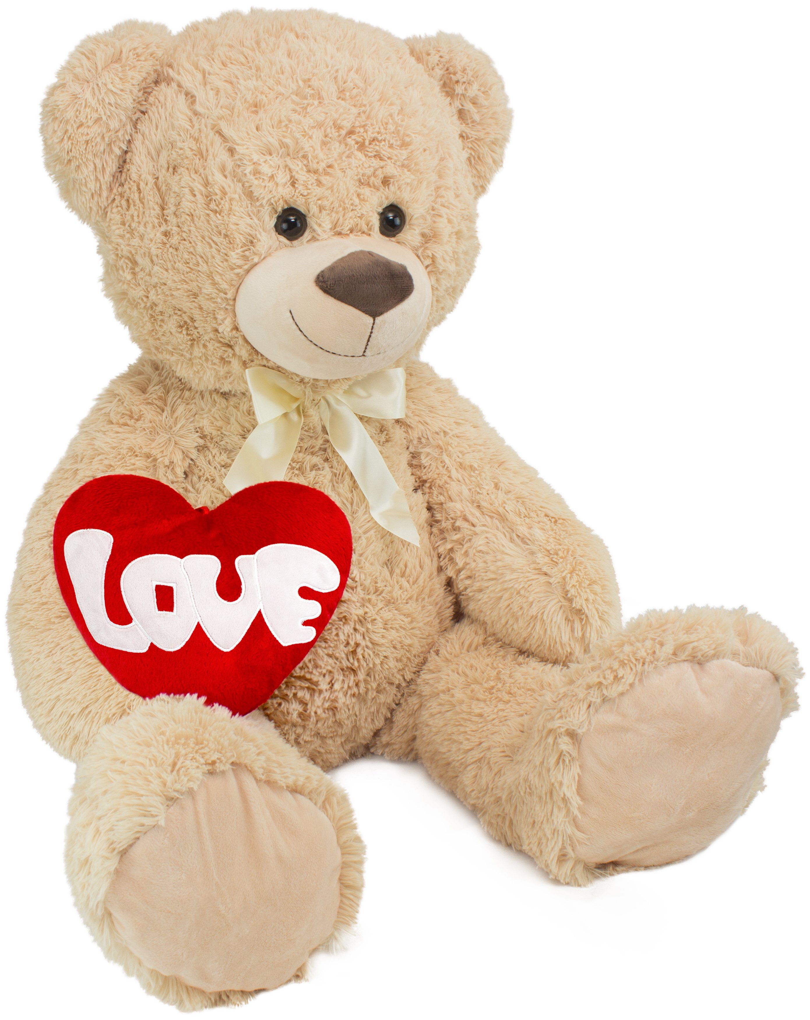Mit seiner Gesamthöhe von 100 cm hat der Teddy die optimale Размер für bärige Umarmungen, kann aber auch sehr gut als großes Kuschel-Kissen und Kissen-Tier genutzt werden. Sitzend ist der Knuddel-Kumpel ca. 60 cm hoch.