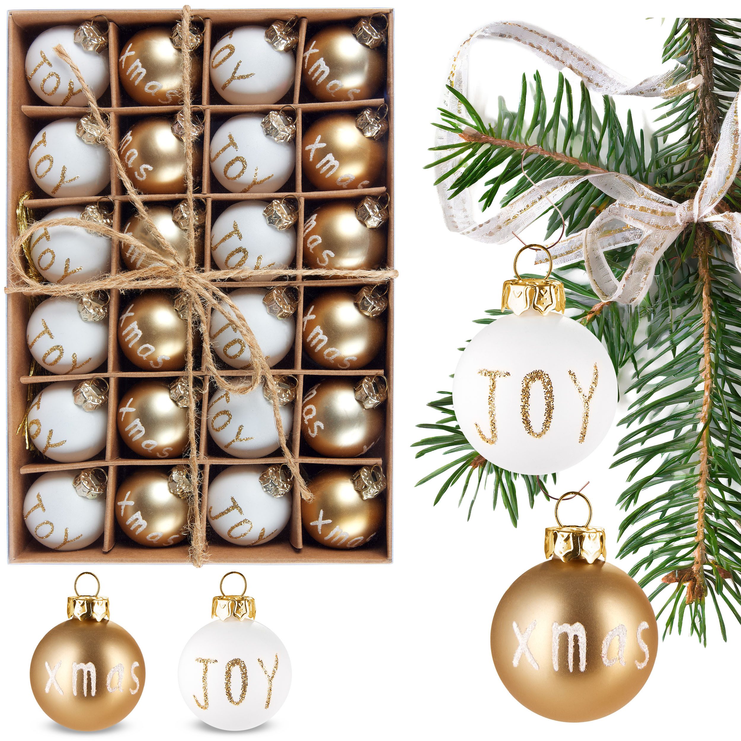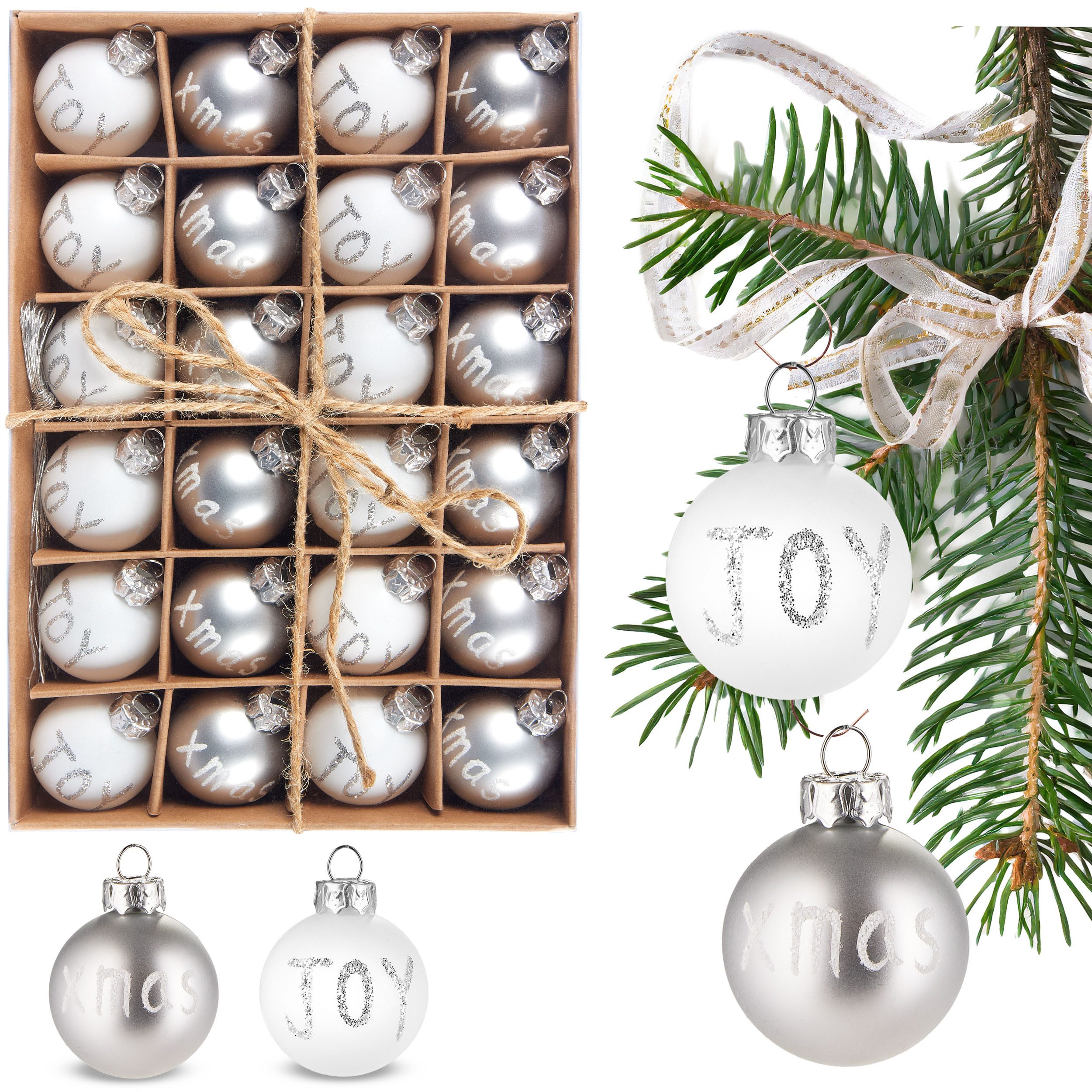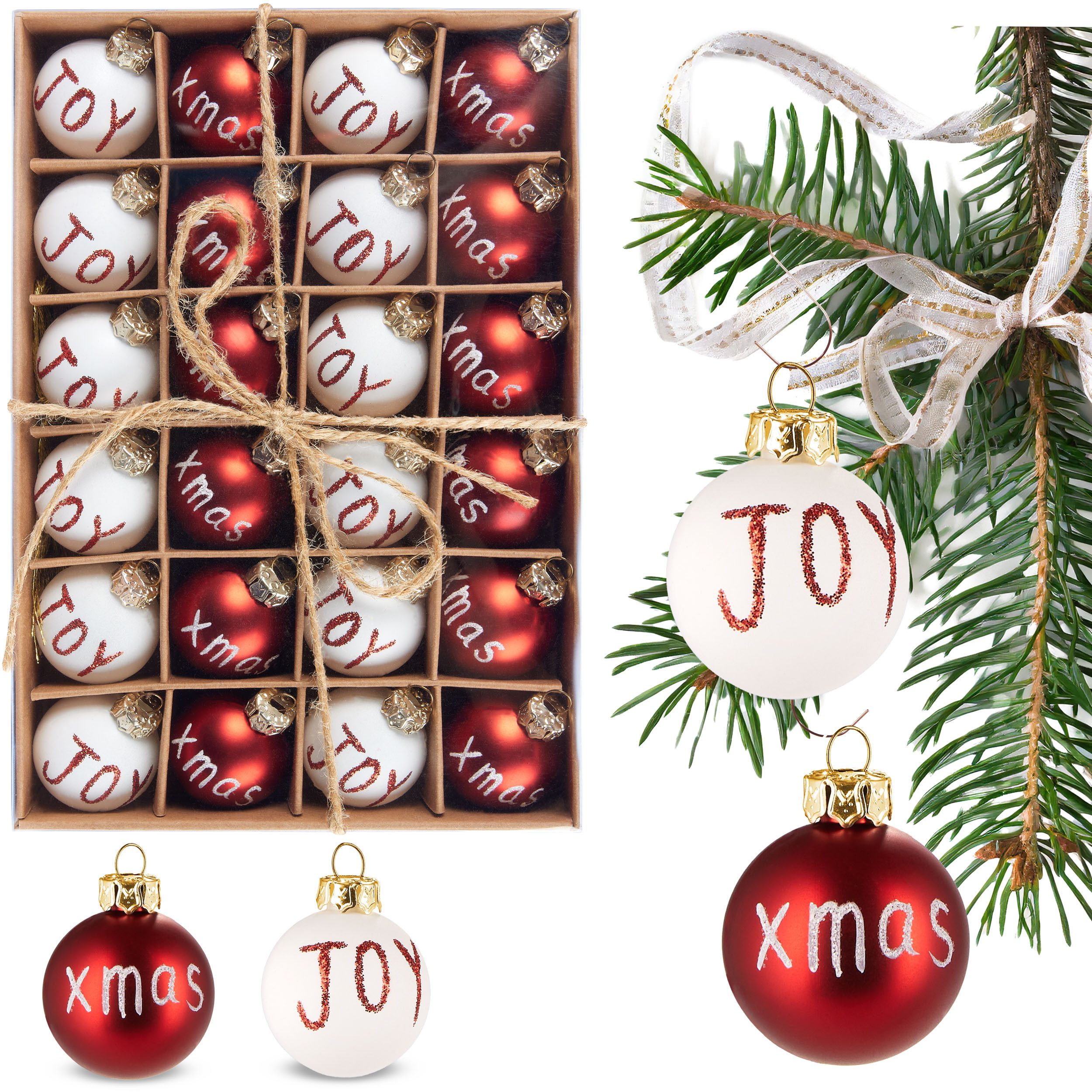 BRUBAKER 24-teiliges Set Weihnachtskugeln Joy & Xmas – Festliche Mini-Christbaumkugeln in Rot und Weiß