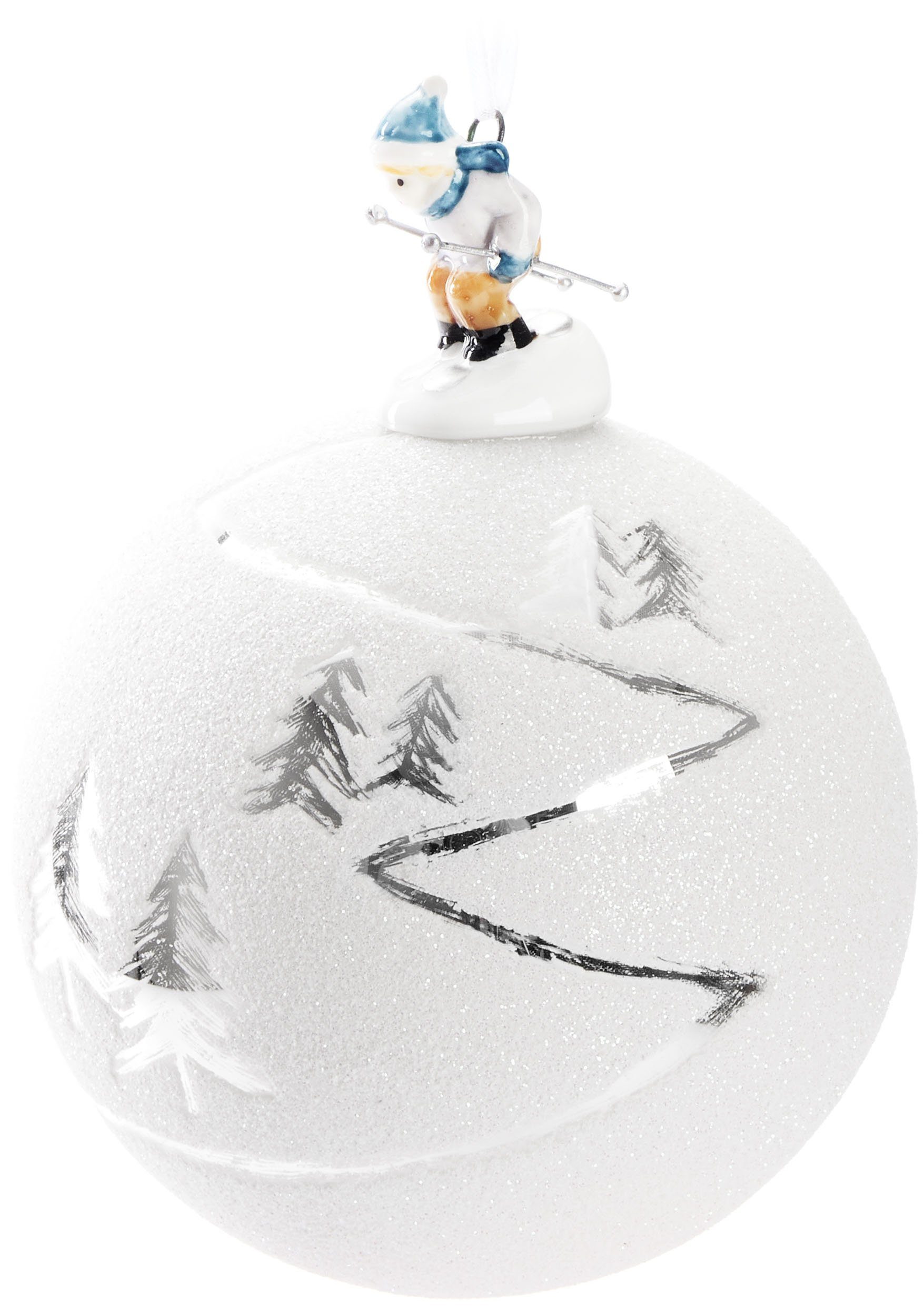Lieferumfang | 1x Premium Weihnachtskugel "Skipiste" (Schlitten oder Ski) |