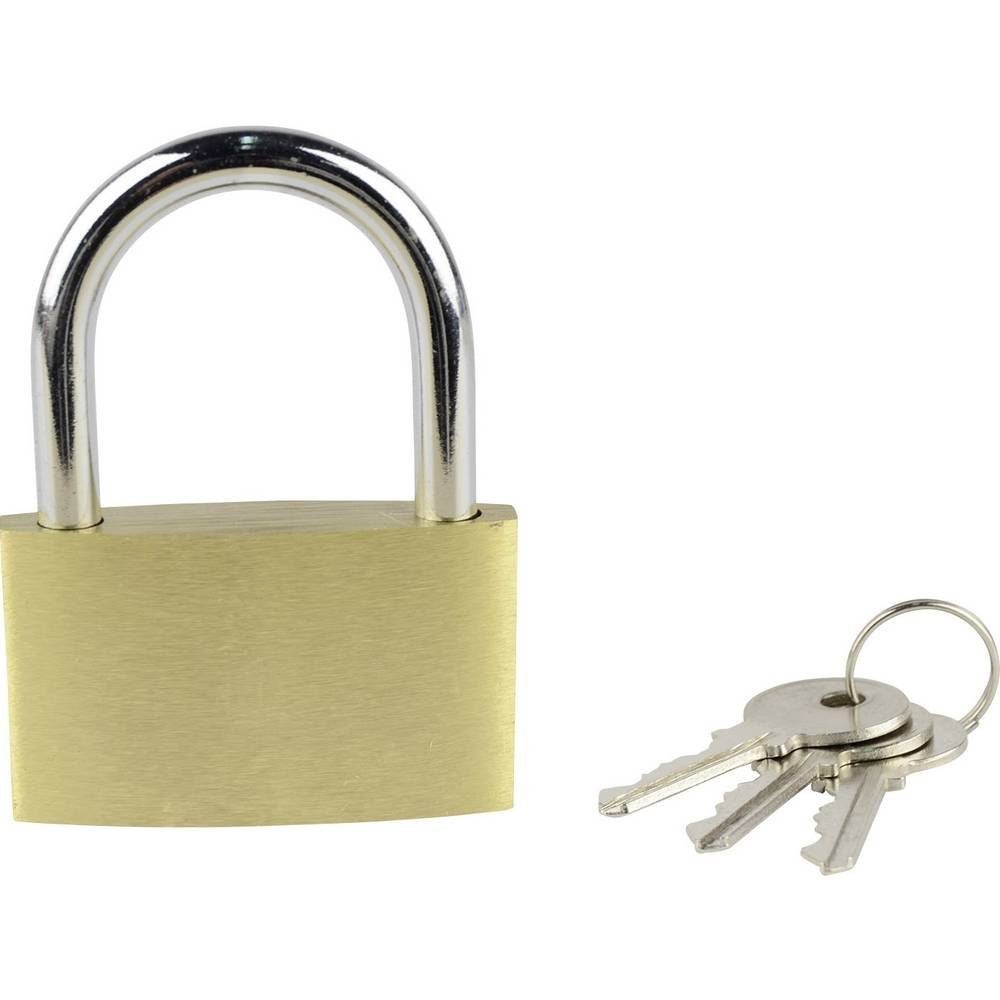 Eigenschaften | Bügelinnenhöhe: 27 mm · Herstellerfarbe: Goldgelb · Material: Messing · Produktabmessung, Breite: 50 mm · Produktabmessung, Höhe: 34 mm · Schließmechanismus: verschieden schließend · Schloss-Typ: Schlüsselschloss |