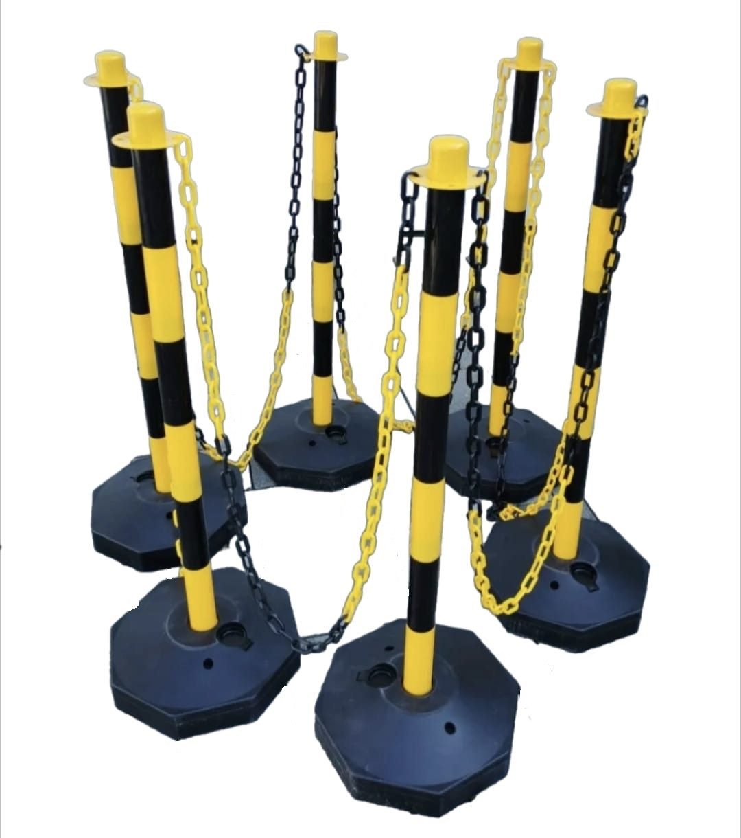 Die 4 mm dicken Kunststoff - Absperrketten sind in den Signalfarben gelb/schwarz.