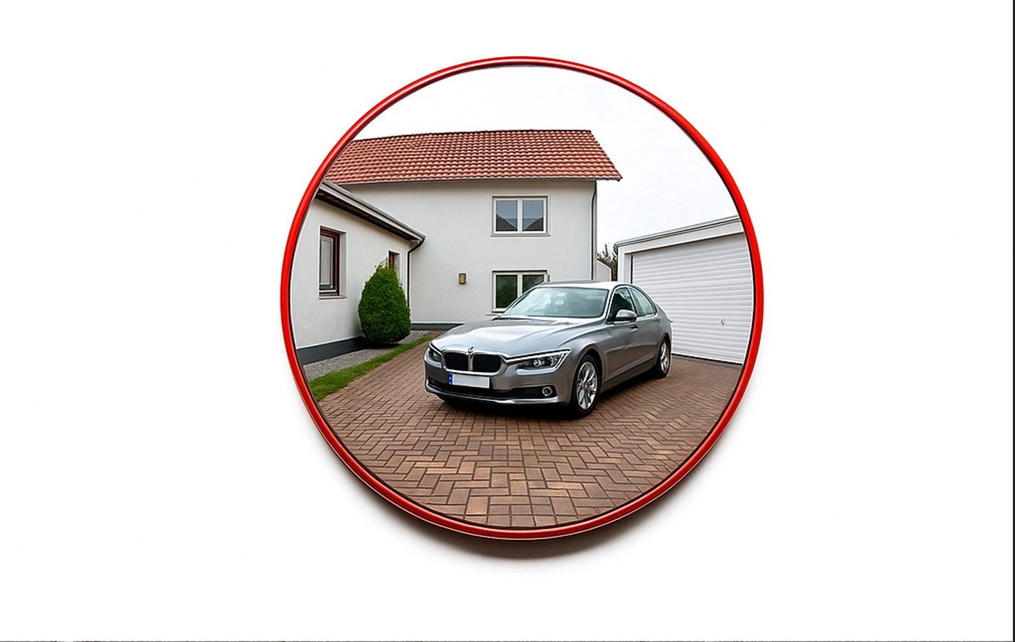 Durch die hochauflösende Spiegeloberfläche aus schlagresistentem PC-Kunststoff sind auch Objekte in grösserer Entfernung bestens sichtbar