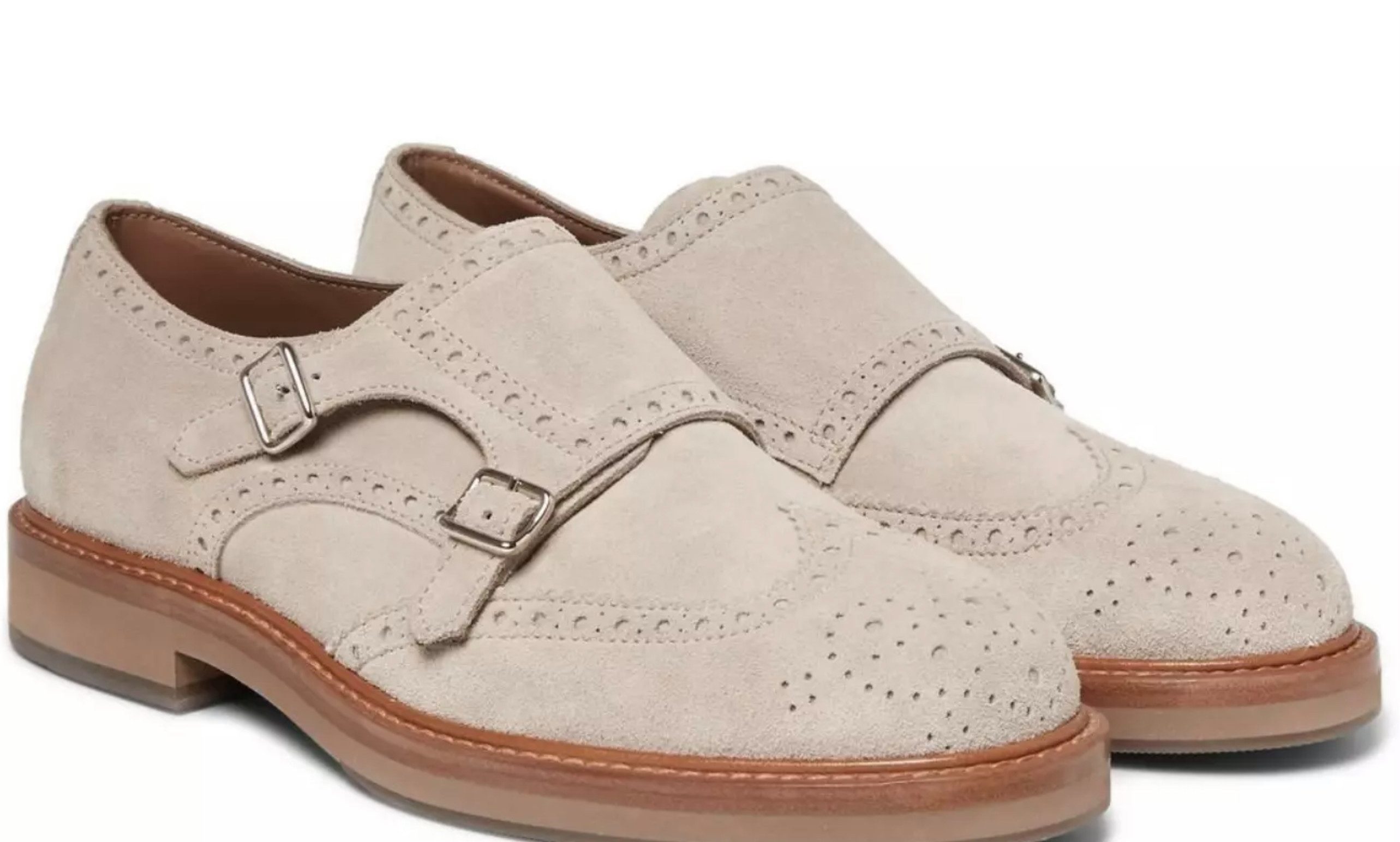 Sichern Sie sich ein Stück italienischer Luxusmode mit den Brunello Cucinelli Double Monk Suede Brogue Schuhen – jetzt erhältlich!