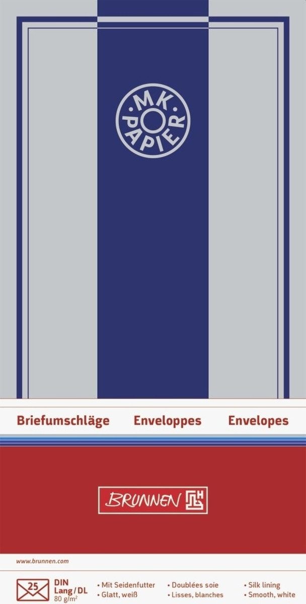 BRUNNEN Briefumschlag Briefumschläge MK DINlang 80g/qm weiß VE=25 Stück