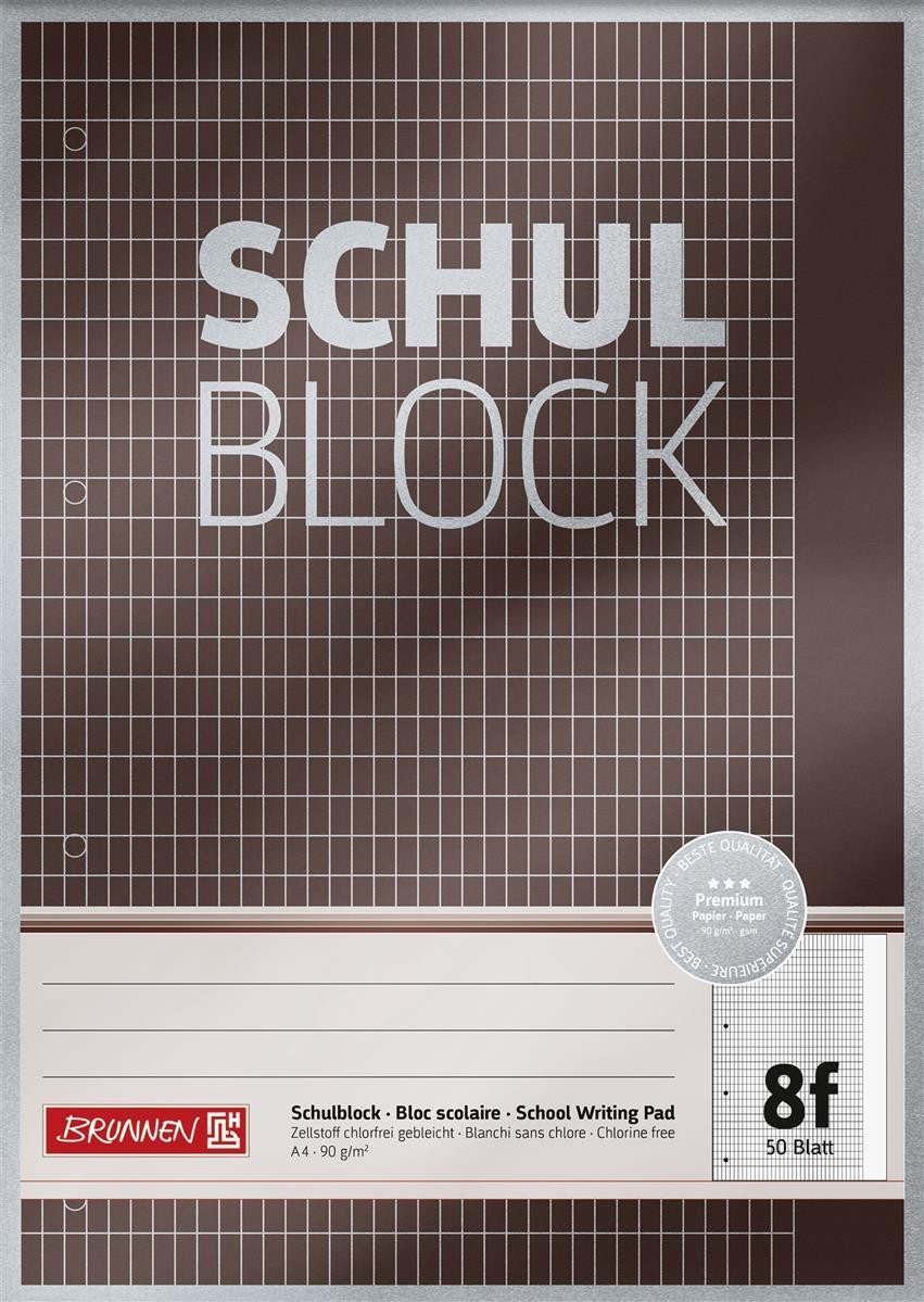 BRUNNEN Collegeblock Block Premium "Schulblock" A4 5 x 7 rautiert mit Rand, Lin. 8f