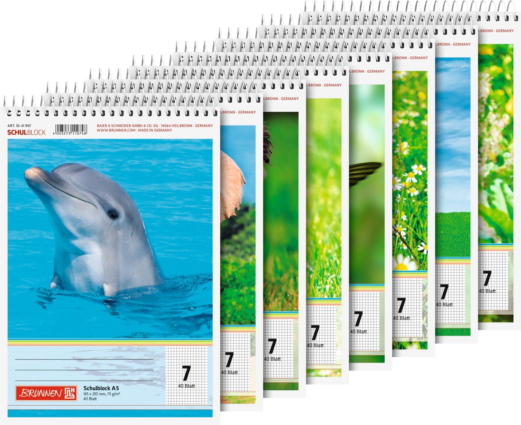 Brunnen Schulblock 'Lineatur 7', 40 Blatt im DIN A5 Format mit einem Papiergewicht von 70 g/m². 7 mm kariert, Lin. 7. Spiralgebunden am Kopf und mit Microperforation für ein leichtes Heraustrennen der Blätter. Perfekt für den Schulstart, aber auch für Studium, Büro oder Zuhause. Der Block bietet Platz für Notizen, Protokolle, Listen und mehr. Hinweis: Das Motiv auf dem Cover ist nicht frei wählbar.
