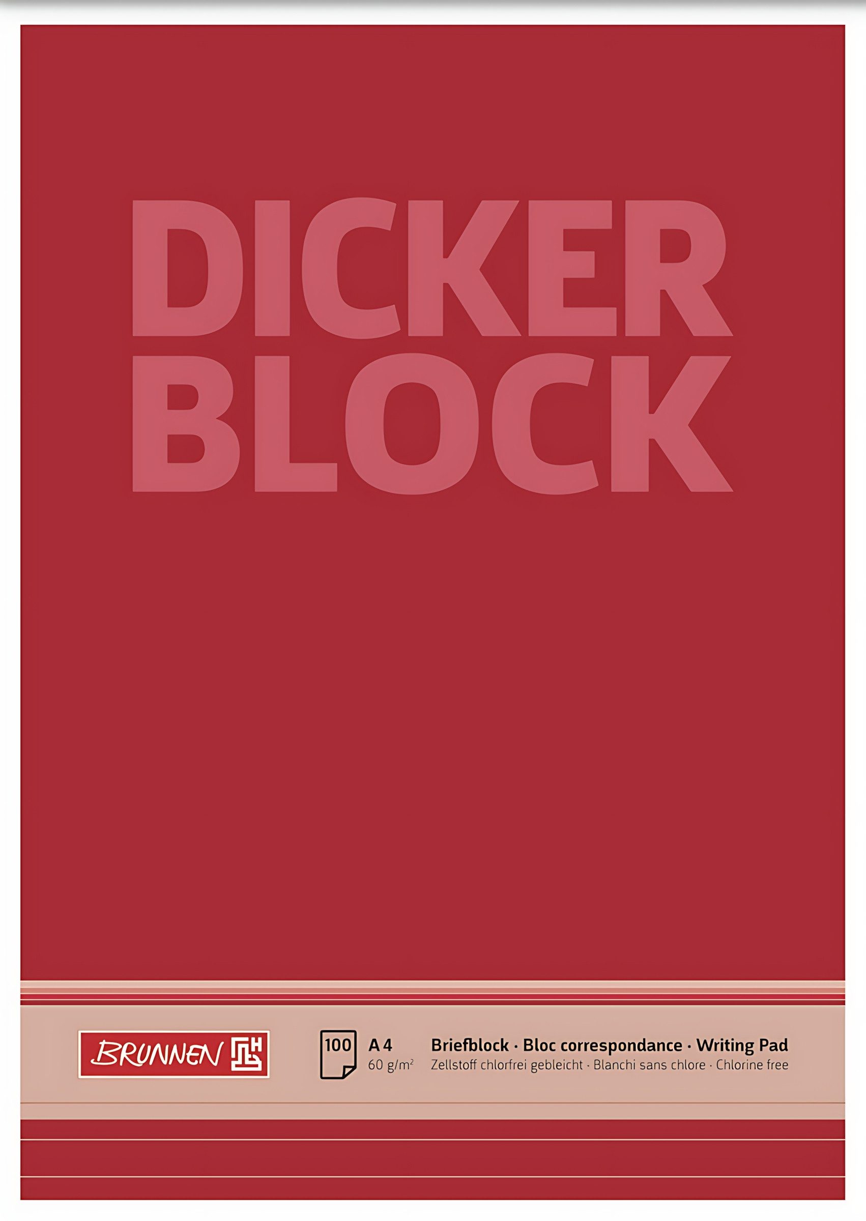 Briefblock „Dicker Block“, A4, 100 Blatt, Lineatur 21, rot Format: A4 liniert, Lin. 21 100 Blatt 60 g/m², Qualitätspapier, Klebebindung Einband: Chromokarton, Farbe: rot