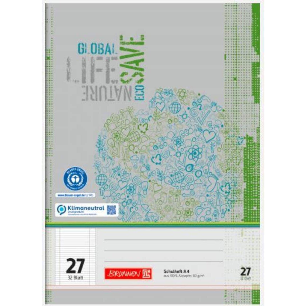 Schulheft BRUNNEN Schulheft Recycling A4 liniert, mit Randlinie innen und außen