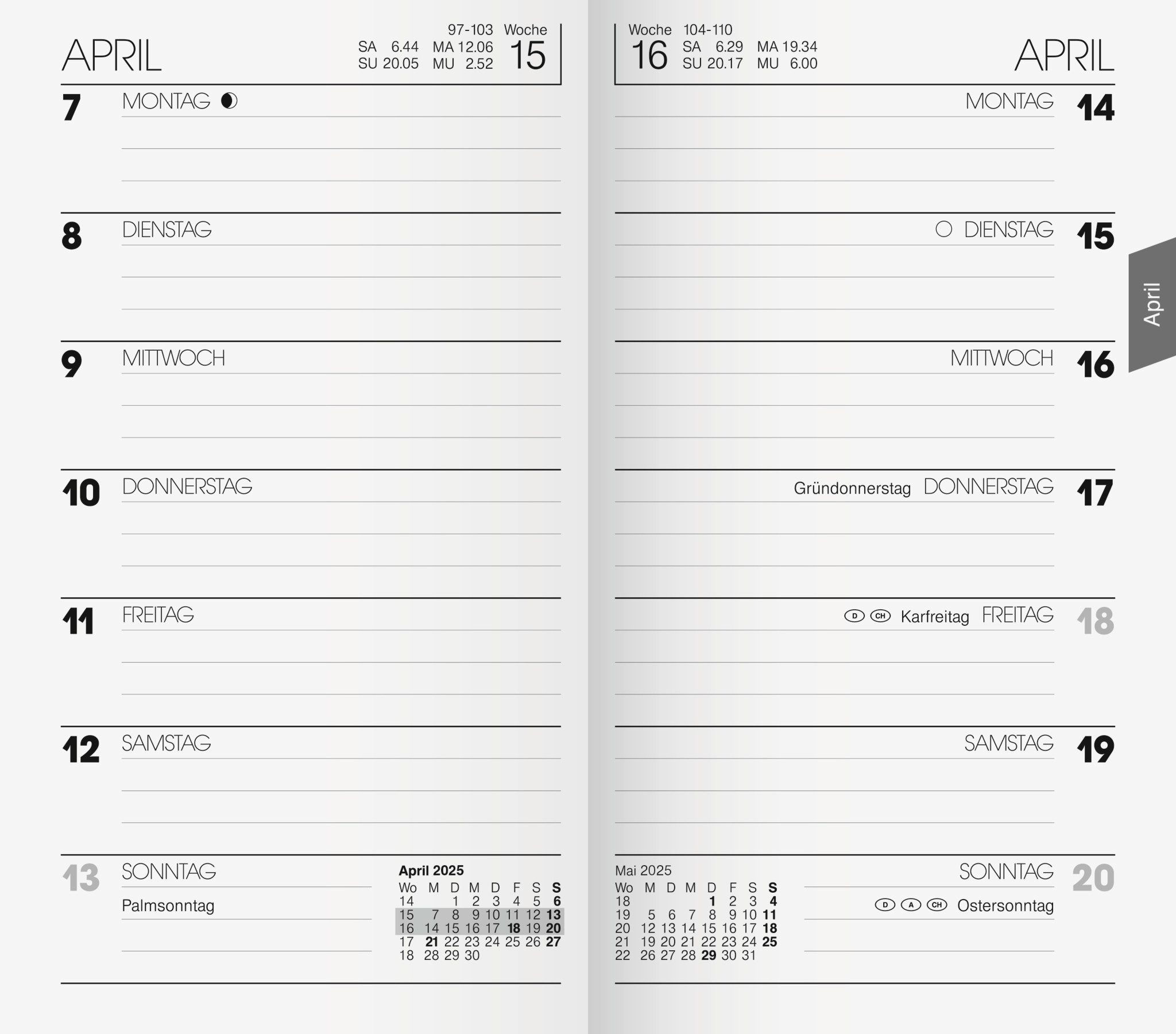 Jahresübersicht aktuelles Jahr und Folgejahr, 3 Seiten Monatsplan Oktober bis Dezember, Vorjahr, 12 Seiten Folgejahr, Ferientermine Deutschland, 2 Seiten Notizen, 7 Seiten Wissenswertes