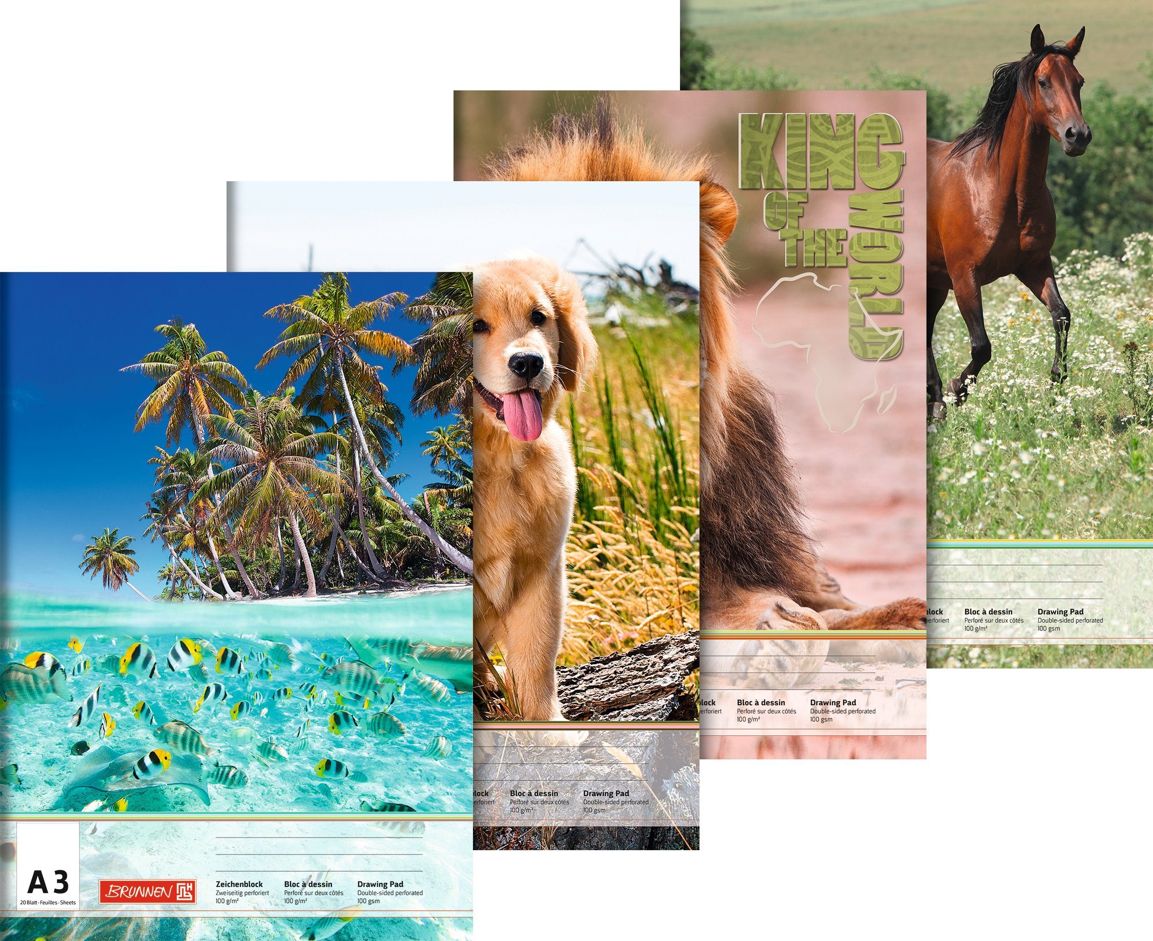 Brunnen Zeichenblock, 20 Blatt mit einem Papiergewicht von 100 g/m². Die Blankoblätter sind 2-seitig perforiert und gefälzelt. Ideal für die Schule, Uni oder für Zuhause, um kreative Zeichnungen, Skizzen, Handlettering und mehr anzufertigen oder zu üben. Hinweis: Das Motiv auf dem Cover ist nicht frei wählbar.
