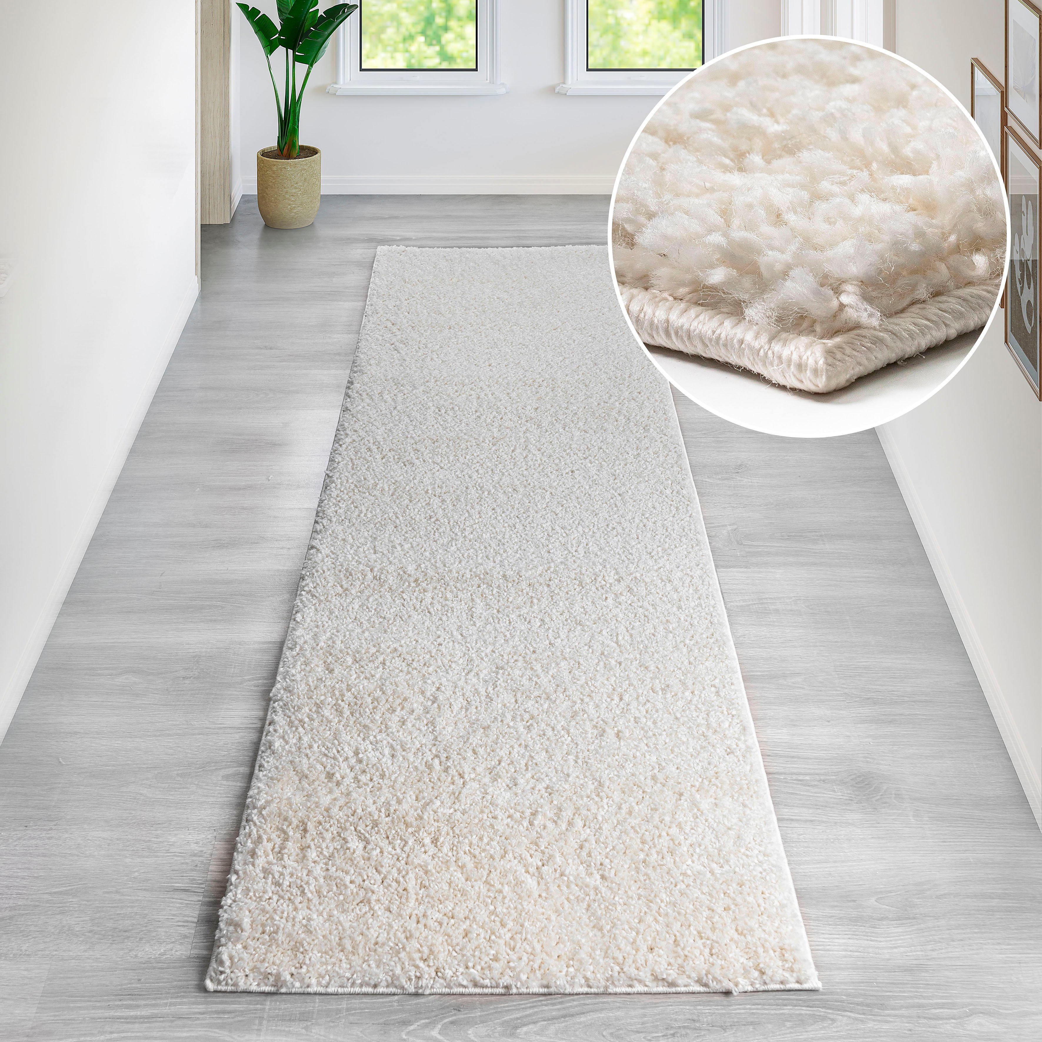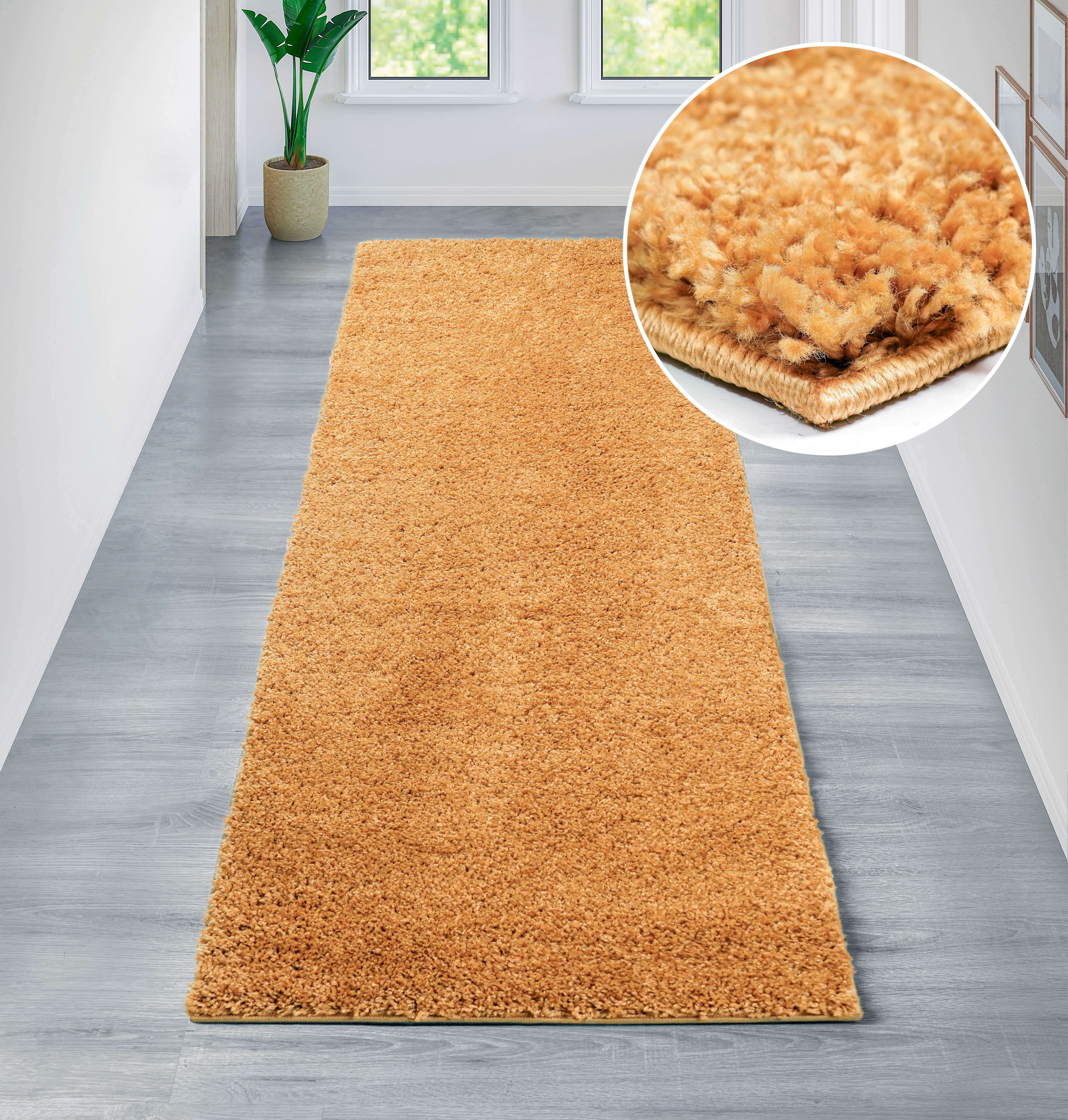 Er hat eine robuste Struktur dank der strapazierfähigen Kunstfaser. Dadurch kannst du ihn als ein praktisches Multi-Talent nutzen. Gut zu wissen: Außerdem ist das Material unempfindlich. Selbst als Hochflor-Style verfügt der Einrichtungsgegenstand über robuste und schmutzabweisende Eigenschaften. So wird in diesem Fall die Reinigung unkompliziert: Denn einfaches Absaugen ist meist ausreichend. Um den Flor wieder flauschig aufzurichten, kannst du ihn zudem kräftig ausklopfen. Die Bodendeko gehört mit ihren 30 mm Höhe zu den Shaggys, was sie besonders kuschelig und gemütlich macht. Das wird dir gefallen, wenn du in deiner Wohnung gerne auf Socken läufst! Wärme an den Füßen bringt der Läufer auch in Zimmer mit Laminat oder Fliesenböden. Denn er ist für Böden mit Fußbodenheizungen geeignet. Er verringert den Trittschall, was auf vielen Böden einen hörbaren Unterschied macht.