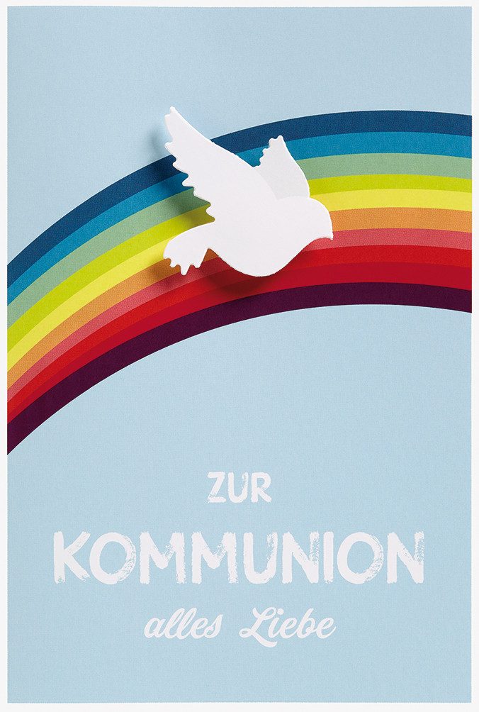 Kommunion Taube auf Regenbogen Collage Glückwunschkarte mit Briefumschlag