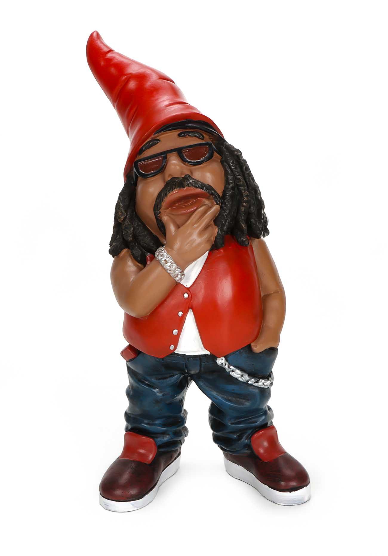 -1x Gartenzwerg mit Rastalocken und roter Zipfelmütze in moderner Optik aus Polyresin