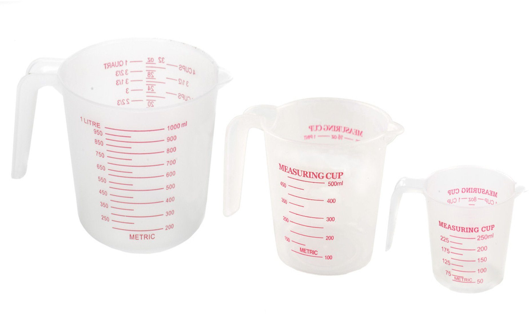 Messbecher sind in der Küche unerlässlich. Mit dem Messbecher-Set von Cuisine Elegance können Sie nahezu alles Abmessen, was Sie zum Kochen und Backen brauchen. Die 3 Messbecher fassen ca. 250ml, 500ml und 1000ml. Zusätzlich zur Milliliter-Einteilung sind die Maßangaben für Tassen, Unzen und Quart angegeben. Die Tassen-Maßeinheiten sind z.B. beim Speisen zubereiten nach Rezept, wie backen, besonders praktisch. Все 3 Messbecher aus weiß, transparentem Kunststoff sind natürlich Lebensmittel geeignet und lassen sich problemlos reinigen. Wir wünschen viel Spaß beim Backen und Kochen nach Maß mit Ihrem neuen Messbecher-Set!