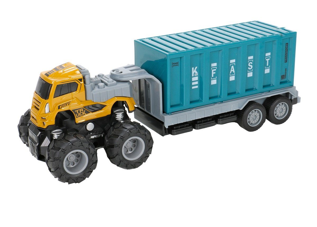 Kinder lieben Spielzeugautos aller Art und am coolsten finden sie LKWs mit großem Anhänger. Dieser Spielzeug-Laster von Gear Box bietet genau das. Die detailliert gestaltete Zugmaschine hat 4 große Profil-Reifen, der mit einem beweglichen Gelenk verbundenen Hänger verfügt ebenfalls über vier Räder. Der Hänger ist mit einem oben offenem Gatter versehen, dessen Rückklappe geöffnet werden kann. Der Clou bei dem Spielzeug-LKW ist jedoch der Friktionsantrieb. Das Fahrzeug wird einfach ein paar mal kurz über den Boden geschoben, damit das Schwungrad in Bewegung kommt. Nach dem Loslassen fährt es - je nachdem wieviel und in welche Richtung man Schwung geholt hat - geradeaus oder auch rückwärts. Sie sparen sich das lästige Batterien Wechseln und nebenbei wird auch noch Ihre Brieftasche geschont. Das ist nachhaltig und kostengünstig. Über diesen tollen LKW mit Hänger wird Ihr Mini-LKW-Fan sich garantiert freuen. Und beim nächsten Geburtstag, Ostern, Weihnachten oder auch nur mal so kann der Fuhrpark auch noch erweitert werden. Wir wünschen Ihnen viel Spaß beim Schenken und dem Nachwuchs beim Spielen!