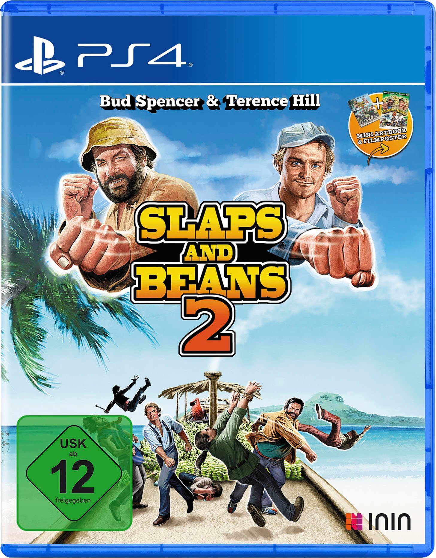 Spielbeschreibung | Nach dem Erfolg von Bud Spencer & Terence Hill - Slaps and Beans melden sich Trinity Team, Buddy Productions und ININ Games mit einem neuen Spiel zurück, das sich an alle Fans des legendären Filmduos richtet. Begib dich auf ein brandneues Abenteuer mit Bud & Terence, in dem mal wieder ein unglücklicher Bösewicht ordentlich vermöbelt wird. Slaps and Beans 2 bleibt der klassischen, horizontal scrollenden Beat 'em up-Mechanik des ersten Spiels treu, bietet schallende Ohrfeigen und fliegende Kicks, aber als Teil eines verbesserten, viel tieferen Kampfsystems. Das Spiel kann allein oder im lokalen Koop-Modus gespielt werden. Das Gameplay wird durch eine Vielzahl von Minispielen, die in die Geschichte eingeflochten sind, um eine erfrischende Abwechslung erweitert und aufgewertet. Mit den authentischen Charakteren und Kämpfen, der Musik von Oliver Onions, den Komponisten der Originalfilme und sogar einer Sprachausgabe wird Slaps and Beans 2 die Herzen der Fans rund um den Globus höher schlagen lassen. Nachdem sie in Afrika Schiffbruch erlitten haben, retten Bud und Terence ein Dorf vor Ganoven und versuchen, mit Hilfe eines örtlichen Bananenkahns den Weg zurück nach Hause zu finden. Aber natürlich wäre es kein Bud und Terence-Abenteuer, wenn alles nach Plan laufen würde. Du findest dich auf einer Reise rund um den Globus wieder, spielst einen Undercover-Polizisten in Miami, schlüpfst als Glücksspieler getarnt in einen Untergrund-Wettring ein und kämpfst unterwegs gegen Gangster, Ninjas, Soldaten und mehr. Und am Ende scheint das alles auch noch irgendwie mit Bananen zu tun zu haben! |