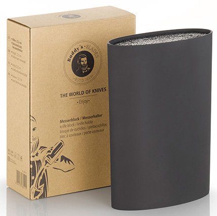Buddy´s Blades - Messerblock, Messerhalter, unbestückt, 23 cm Höhe, schwarz, oval, hochwertiger Kunststoff, klingenschonender PET-Borsteneinsatz, leicht zu reinigen