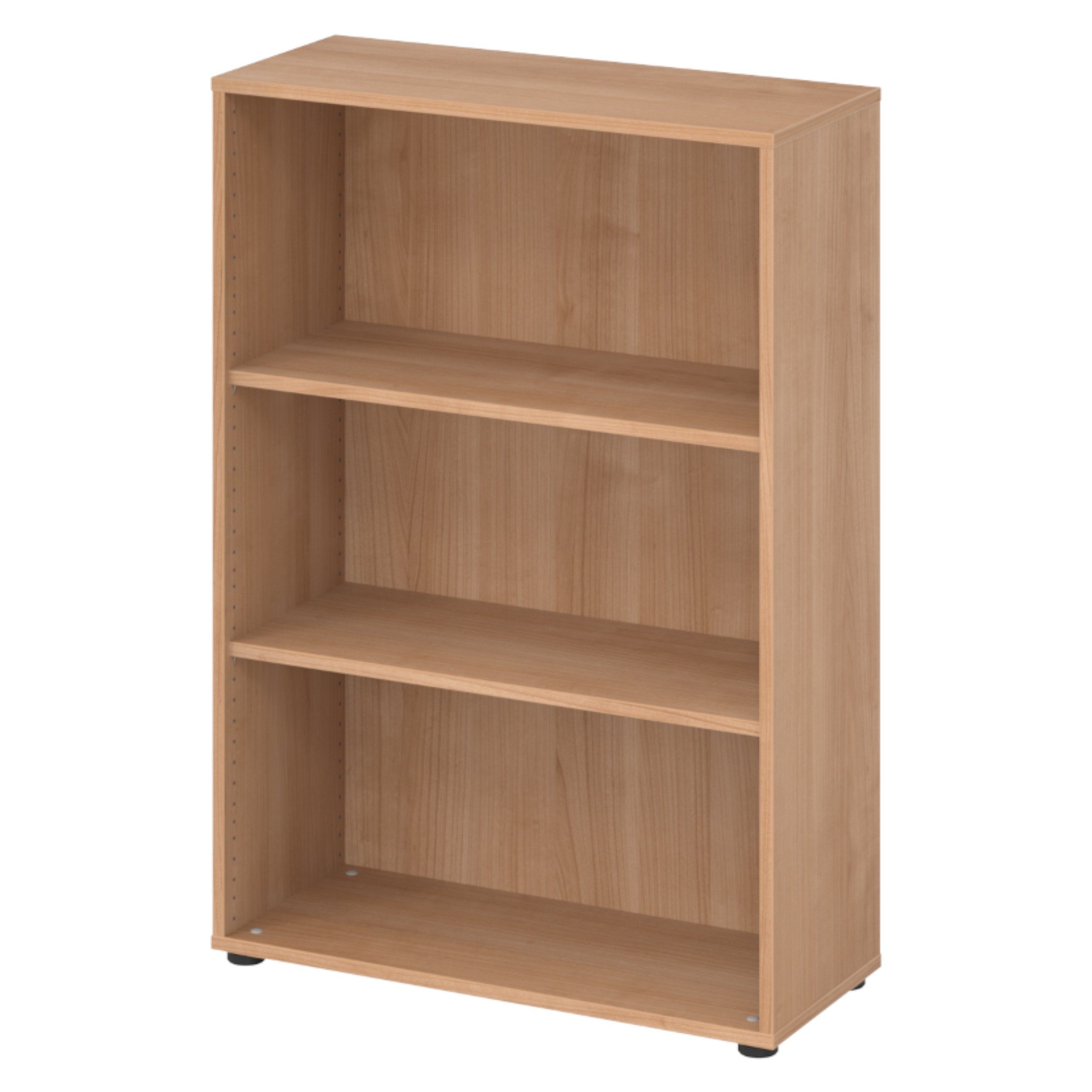 Das bümö Basic Büroregal für 3 Ordnerhöhen bietet genügend Platz für Aktenordner und Stauraum für Material. Zwei Einlegeböden werden mitgeliefert und können im Raster von 3,2 cm höhenverstellt werden. Das Regal ist offen und in 5 attraktiven Dekoren erhältlich. Über die Sockelfüße können Bodenunebenheiten von +/- 0,5cm ausgeglichen- und somit ein sicherer, kippelfreier Stand garantiert werden.